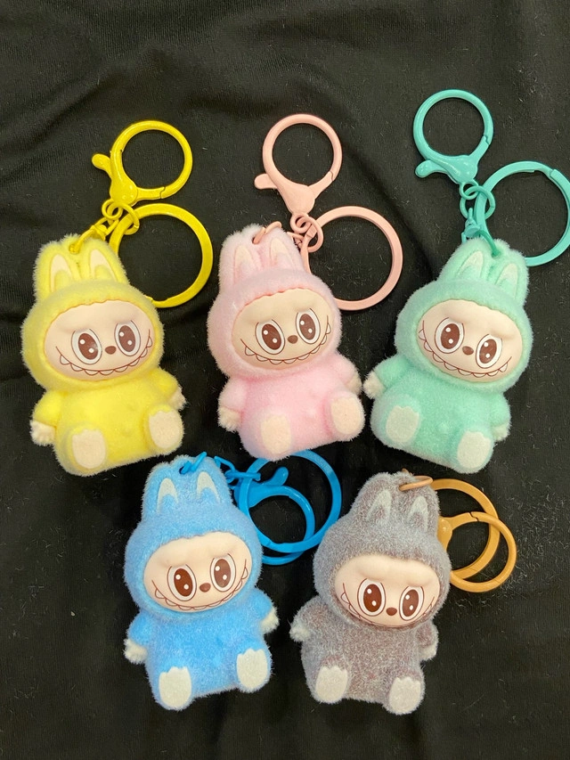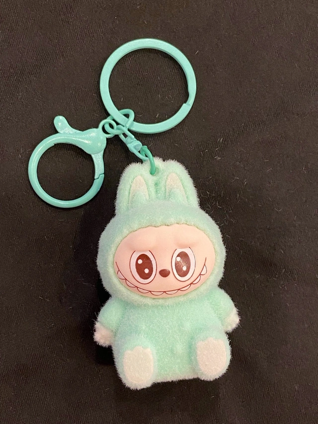 Cute Labubu Keychain with a 6cm-tall Labubu charm $10 each. Multiple colours available (green, pink, yellow, blue, brown). Check out my other listings for more Labubu-themed items! Porch pickup in Cambridge.