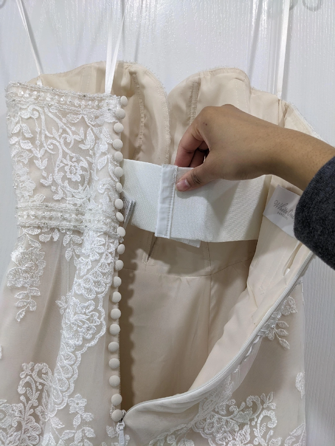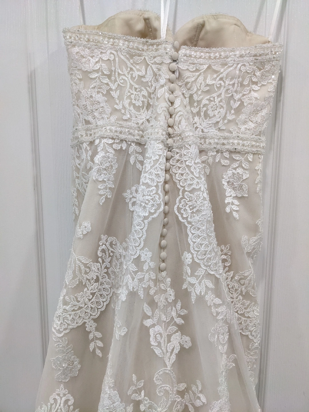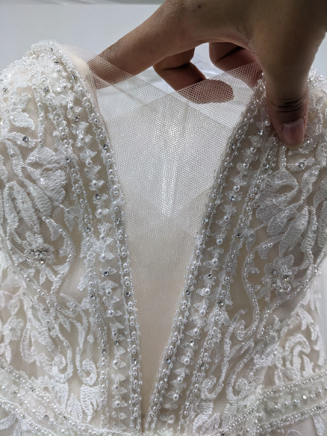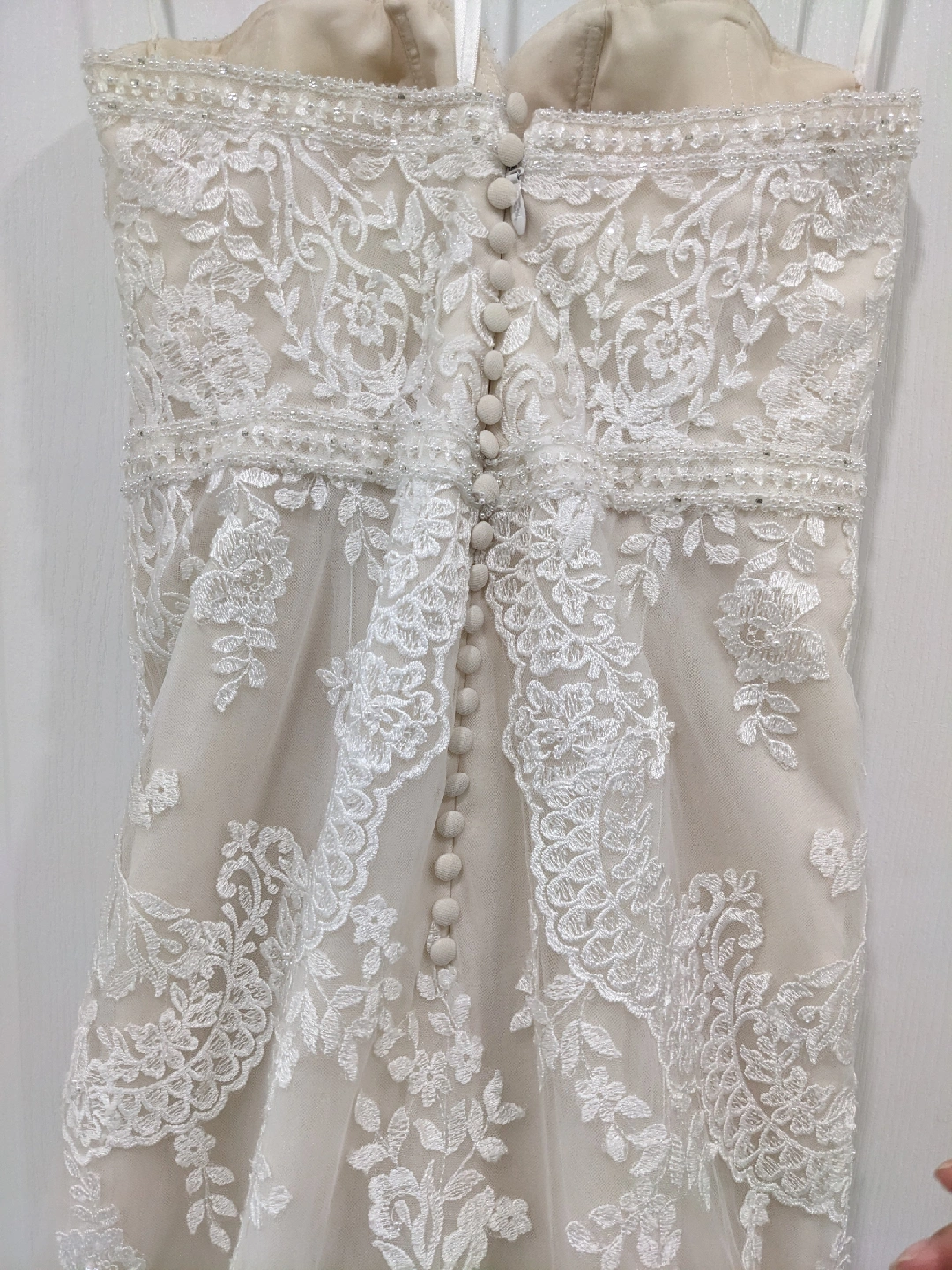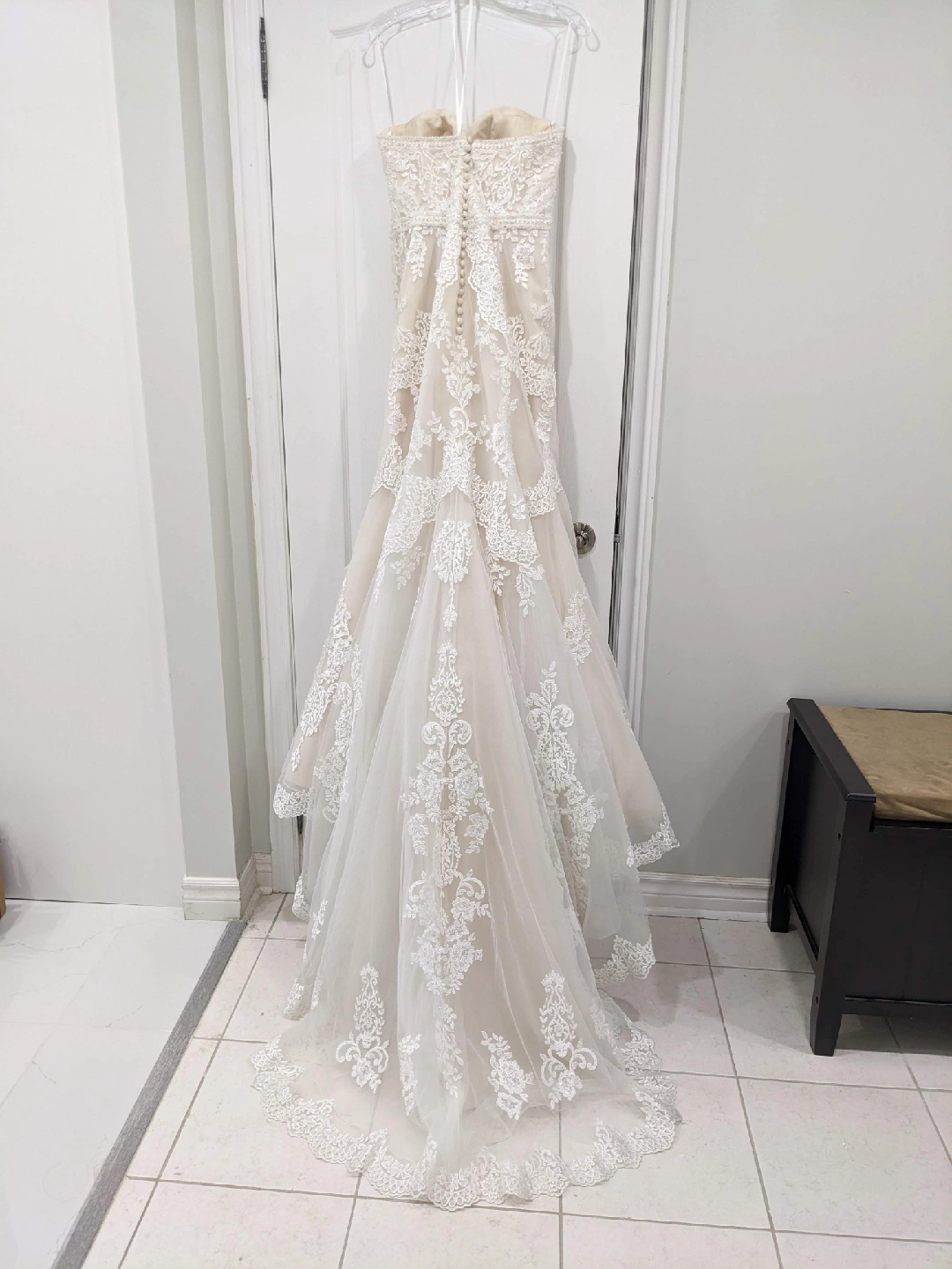 10Beautiful lace wedding dress, perfect for your special day! It features delicate lace detailing and a flattering silhouette. It's in perfect condition. Never worn (only tried on), never altered. Made in Barcelona. Swarovski Crystals. Very comfortable.