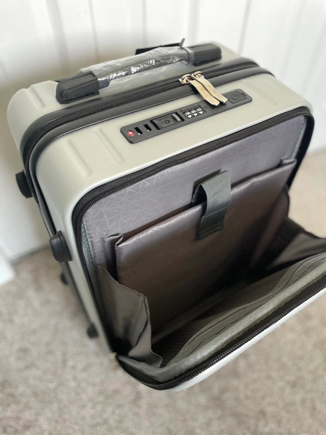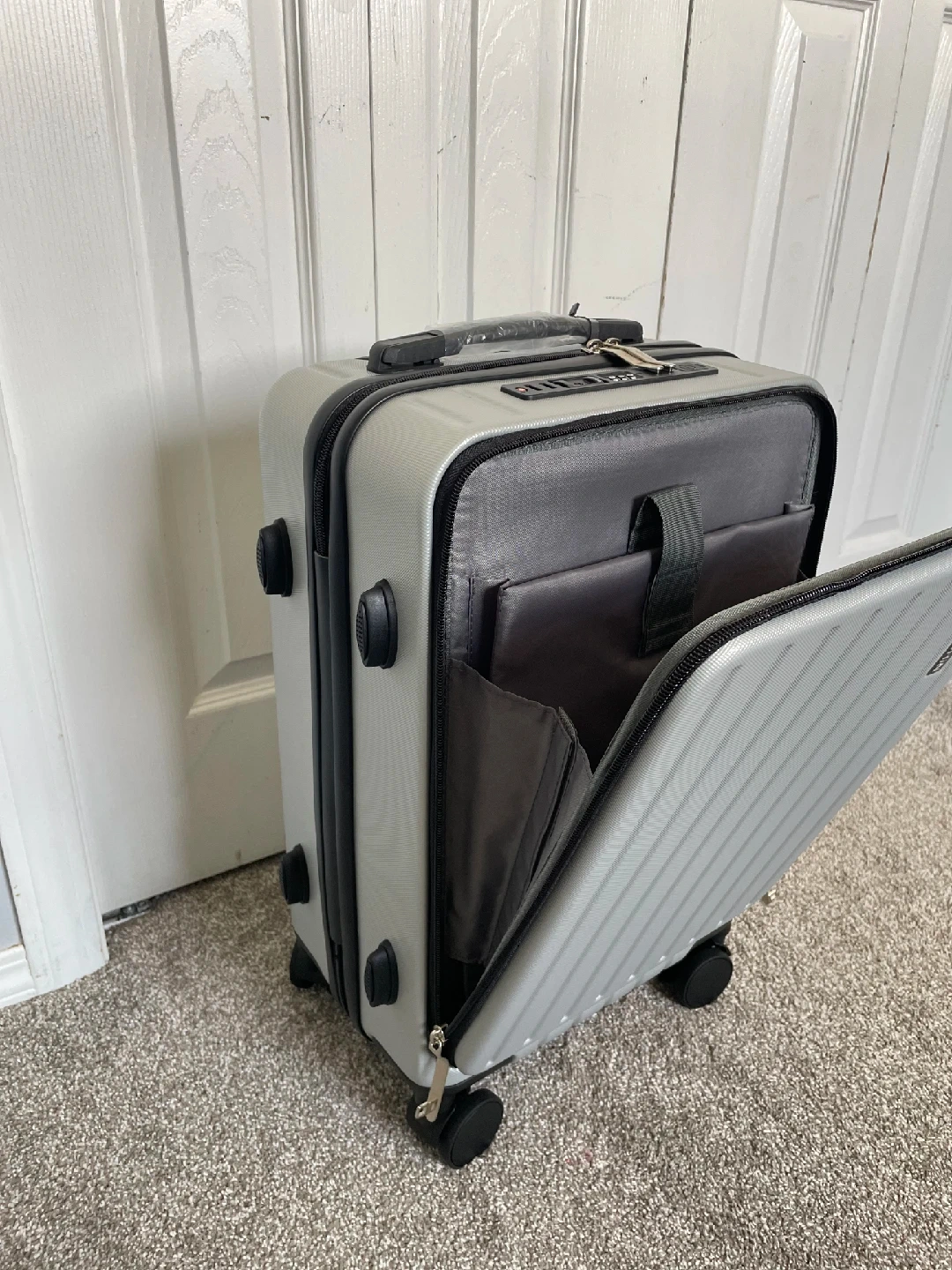 10Looking to sell this Lachin carry-on luggage in silver. It's brand new never opened and ready for your next trip! It has a sleek design and is perfect for fitting everything you need for a short getaway