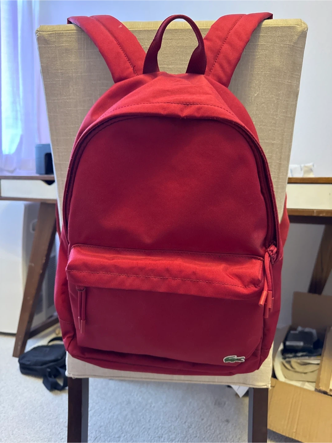 Buy & SellLacoste Red BackpackLacoste Red Backpack$19This is a red Lacoste backpack in great condition! It's perfect for everyday use or travel. The backpack features a main compartment and a front pocket for easy access to your essentialsConditionGoodBrandLacoste0 chats·1 favorites·19 viewsSELLERverifiedDanielBurquitlam600 reviewsWHERE TO MEETCheck Location