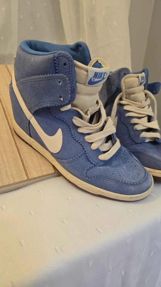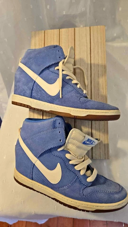 Ladies blue suede wedge Nike sneakers. Ladies size 8.5 Pickup 876 Dundas st west