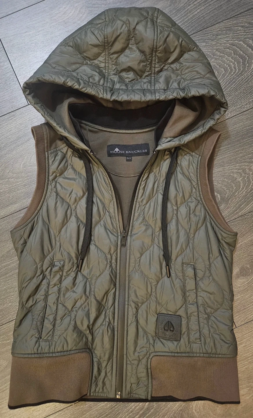 50Selling a Ladies Moose Knuckle, hooded, quilted vest in size XS/TP. It's in great condition and very cozy for the season.