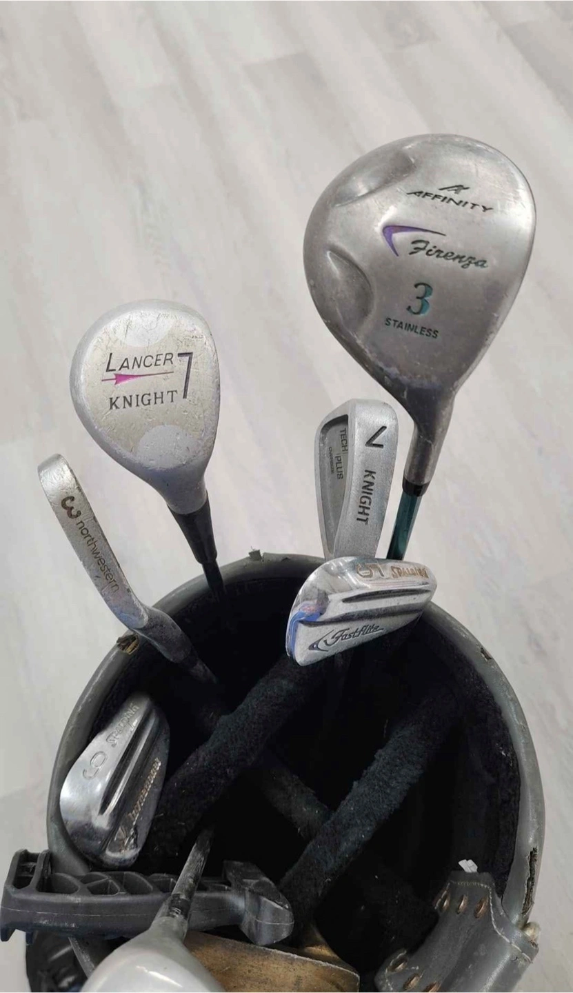 Selling a complete set of golf clubs with bag. Perfect for beginners or casual players looking for an affordable way to get into the game. Includes: • Drivers & woods (Affinity Firenza 3, Knight Lancer 7, X-1000 Distance 5) • Irons (Knight Tech Plus, Spalding, Northwestern, and more) • Putter (Golf Pride grip) • Classic carry bag with zippered pockets
