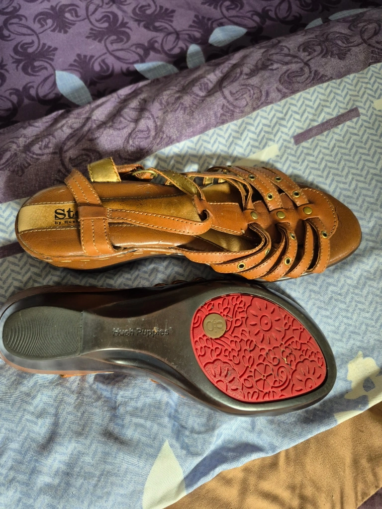 470Check out these stylish brown leather sandals from Hush Puppies! They're in great shape and ready for a new home. Perfect for adding a touch of comfort and style to your summer wardrobe