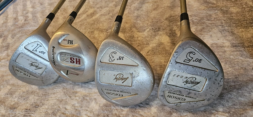 30Selling a set of Lady Edison golf clubs. They are titanium reinforced and include a driver, 3 wood, and 5 wood. Great for beginners!