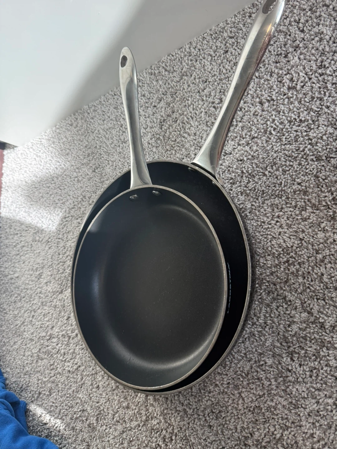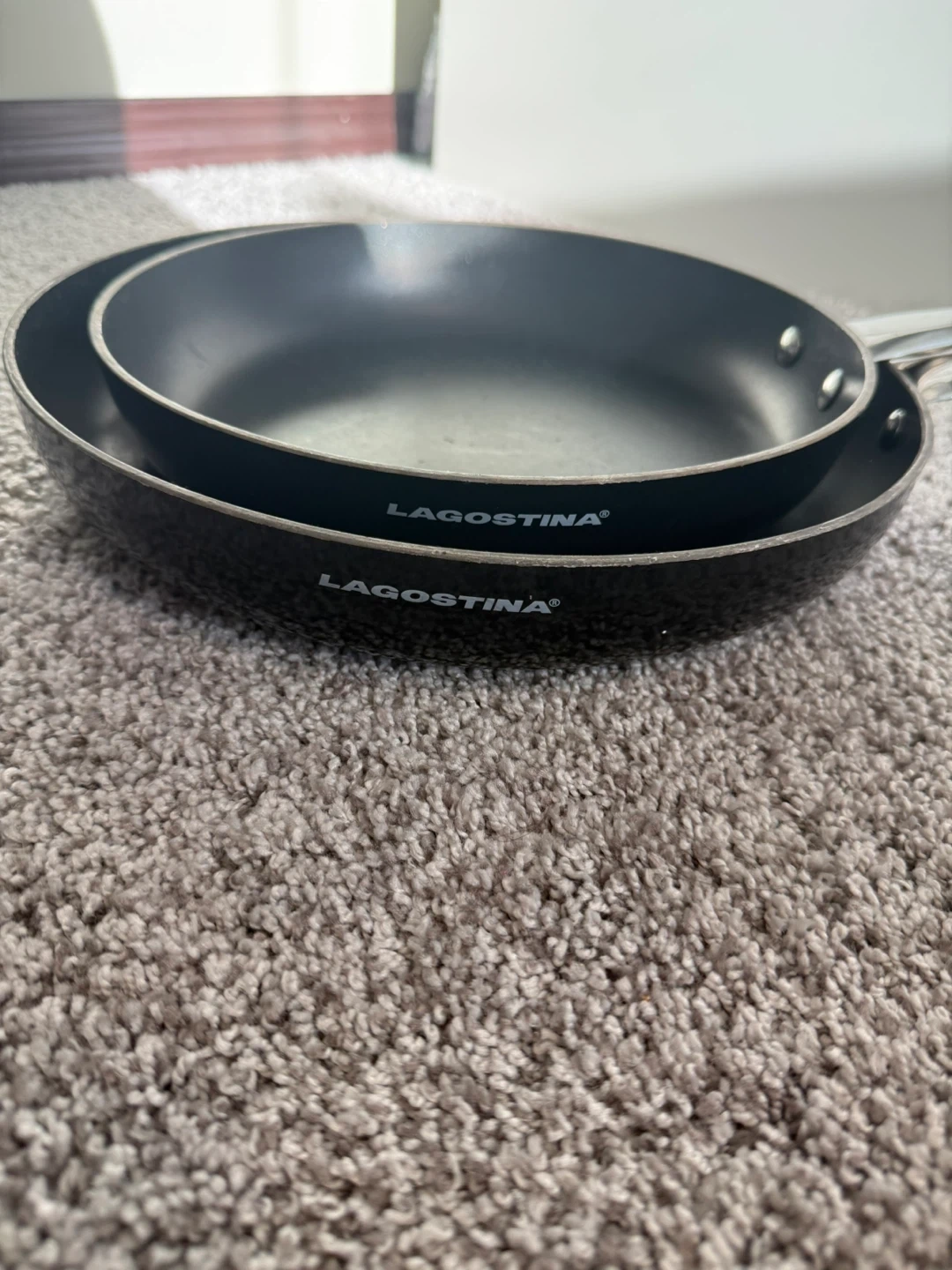 18Selling a set of Lagostina frying pans. They're black with silver handles and in great shape! Perfect for any kitchen.