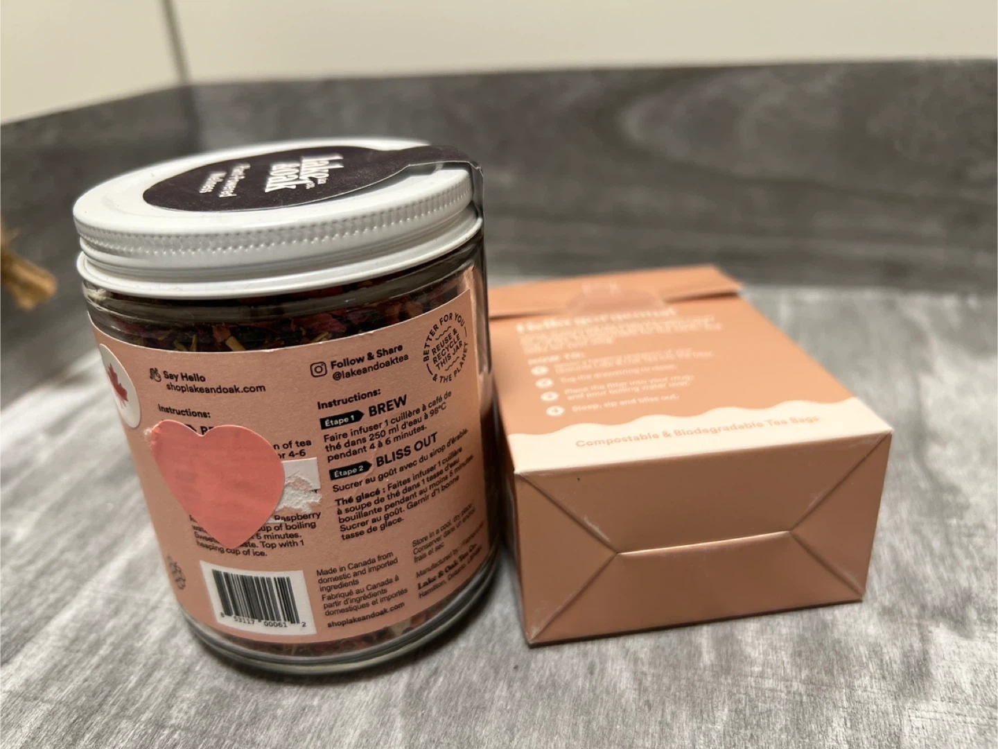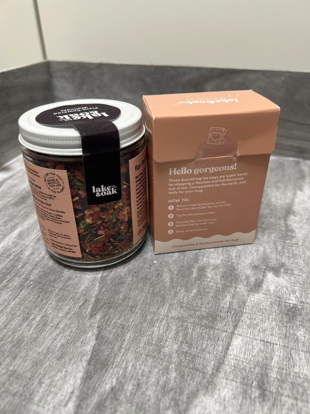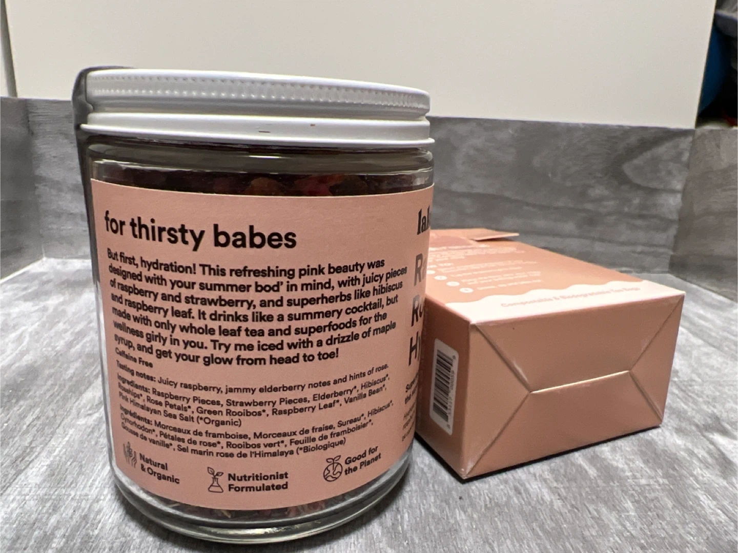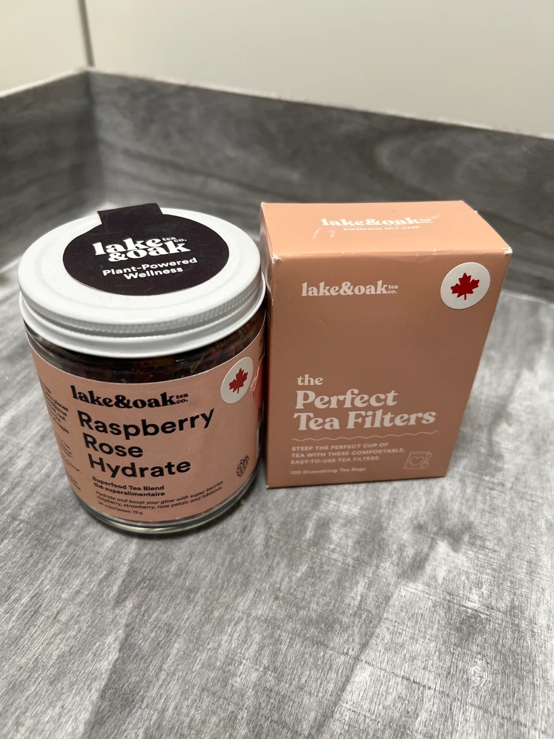 107Selling a jar of Lake & Oak Raspberry Rose Hydrate tea blend, perfect for a refreshing summer drink! It's designed with your summer bod' in mind, with juicy pieces of raspberry and strawberry, and superherbs like hibiscus and raspberry leaf. It drinks like a summery cocktail, but made with only whole leaf tea and superfoods for the wellness girly in you. Also included is a box of The Perfect Tea Filters, which are compostable and biodegradable