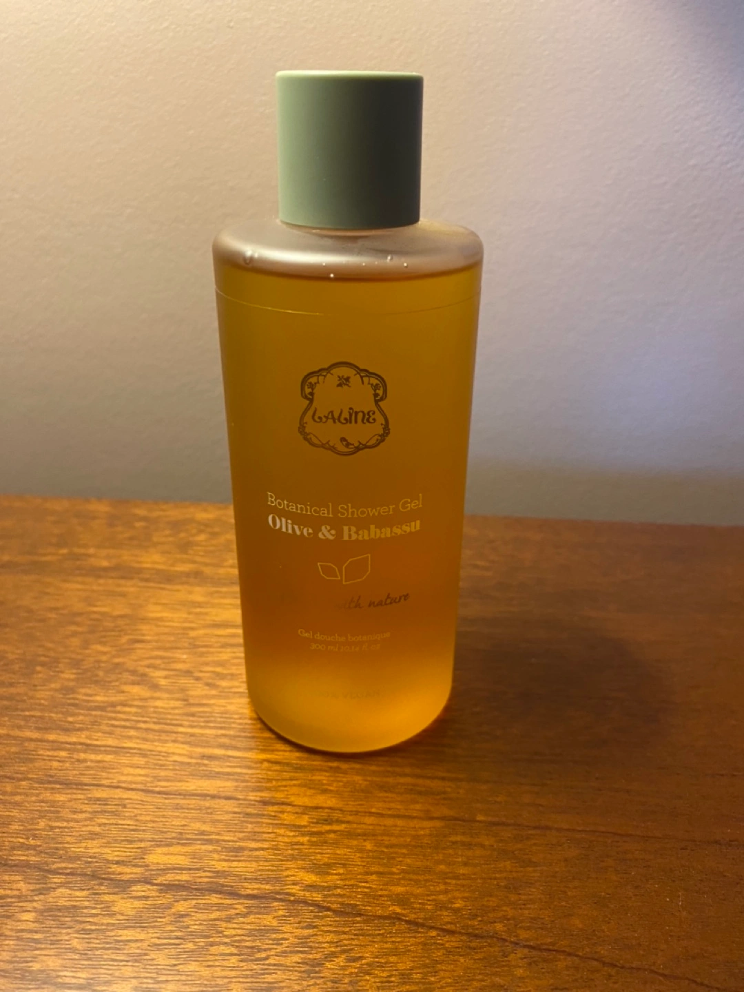 98Laline Botanical Shower Gel in Olive & Babassu. New and unused. 300ml / 10.14 fl. oz.