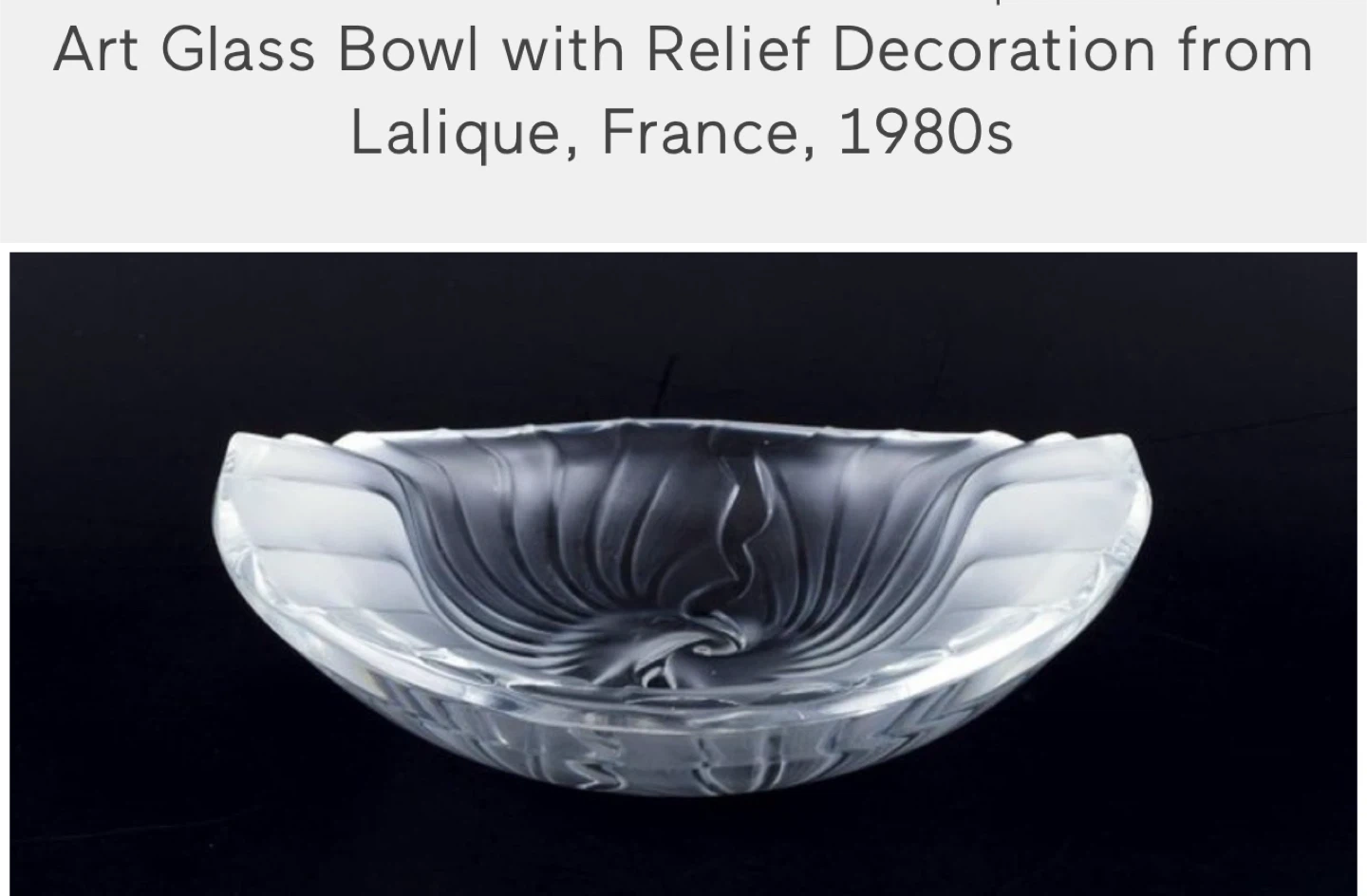 91Selling a beautiful art glass bowl from Lalique, France! It features a lovely relief decoration. A timeless piece to add to your collection!