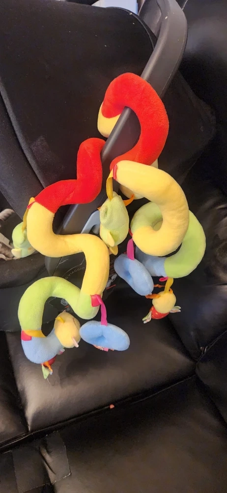 15This is a Lamaze Gardenbug Wrap Around Rattle Toy. It's a colourful and engaging toy designed to stimulate your baby's senses and encourage development. The toy features multiple textures, bright colours, and fun sounds to keep your little one entertained.