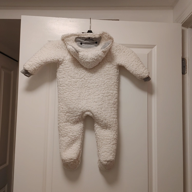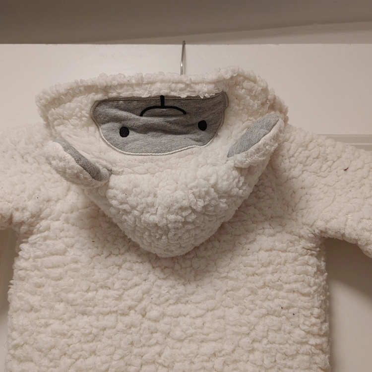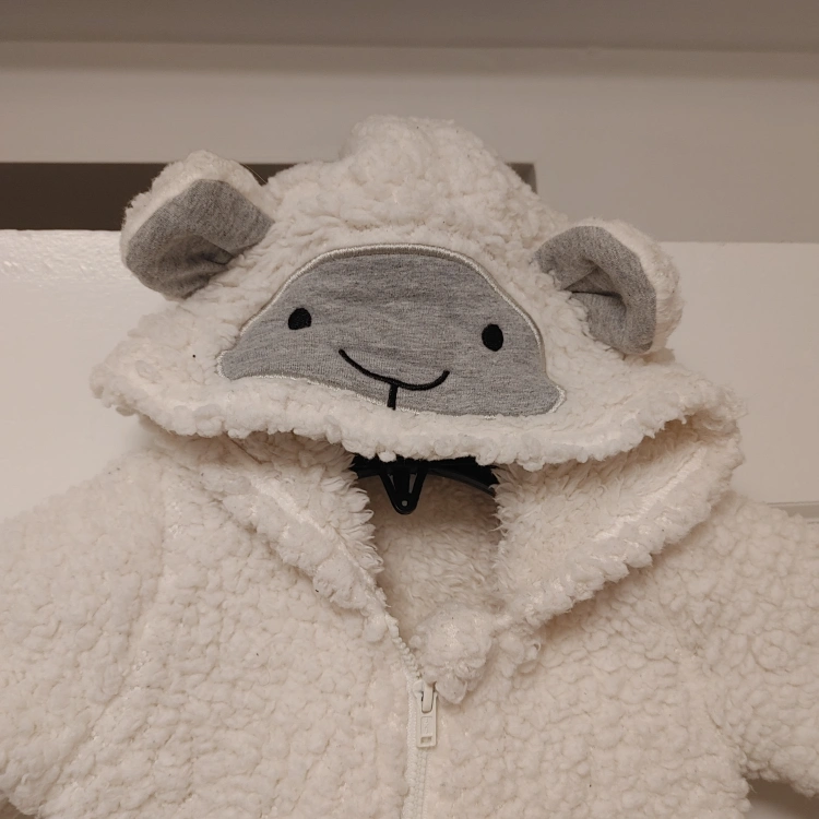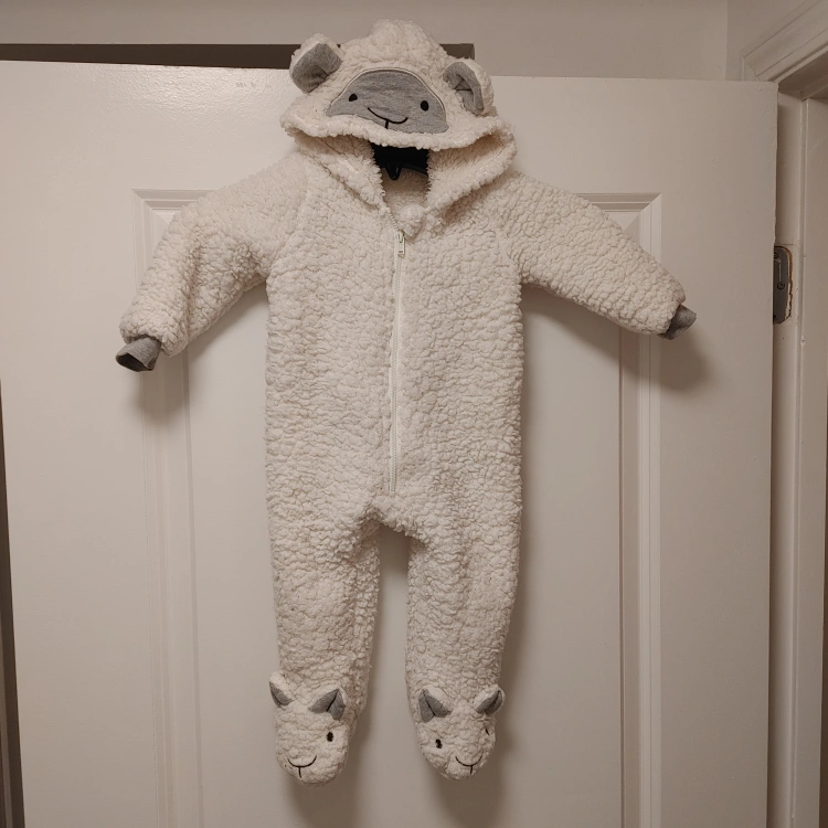 Super cute and cozy lamb sherpa one-piece for your little one! It's in great condition and perfect for keeping them warm during cooler weather