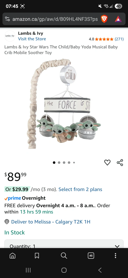 627Lambs & Ivy Star Wars The Child/Baby Yoda Musical Baby Crib Mobile Soother Toy. The original price was $89.99