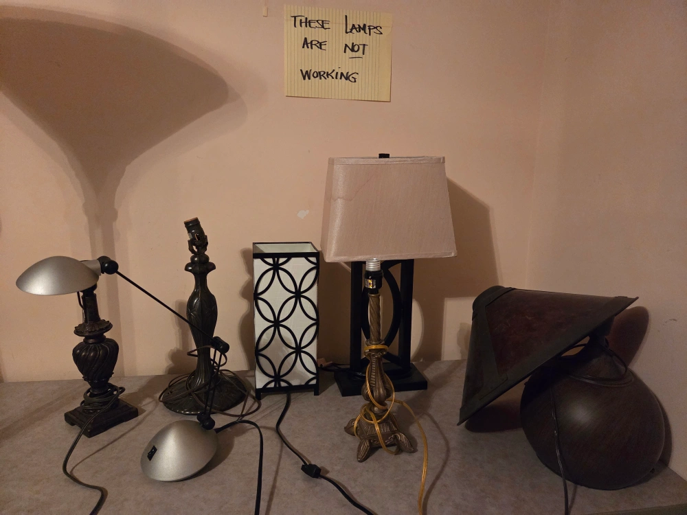 I have a number of lamps for sale. Some are working and some are not. Prices start at $5. Please see the pictures that show which work and which don't.