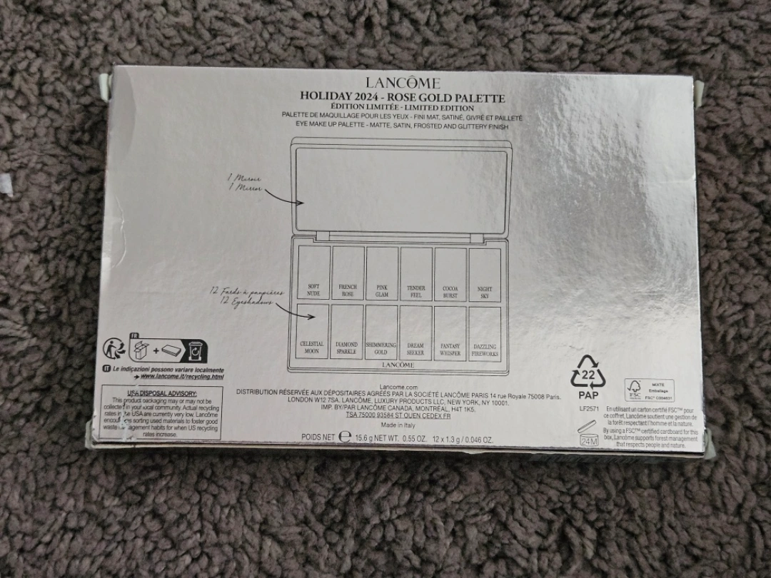 Selling a Lancôme Holiday 2024 Rose Gold Palette, a limited edition item! This palette is perfect for creating matte, satin, frosted, and glittery finishes. The palette includes 12 shades for the eyes, such as Soft Nude, French Rose, Pink Glam, and Cocoa Burst. It comes in its original box.
