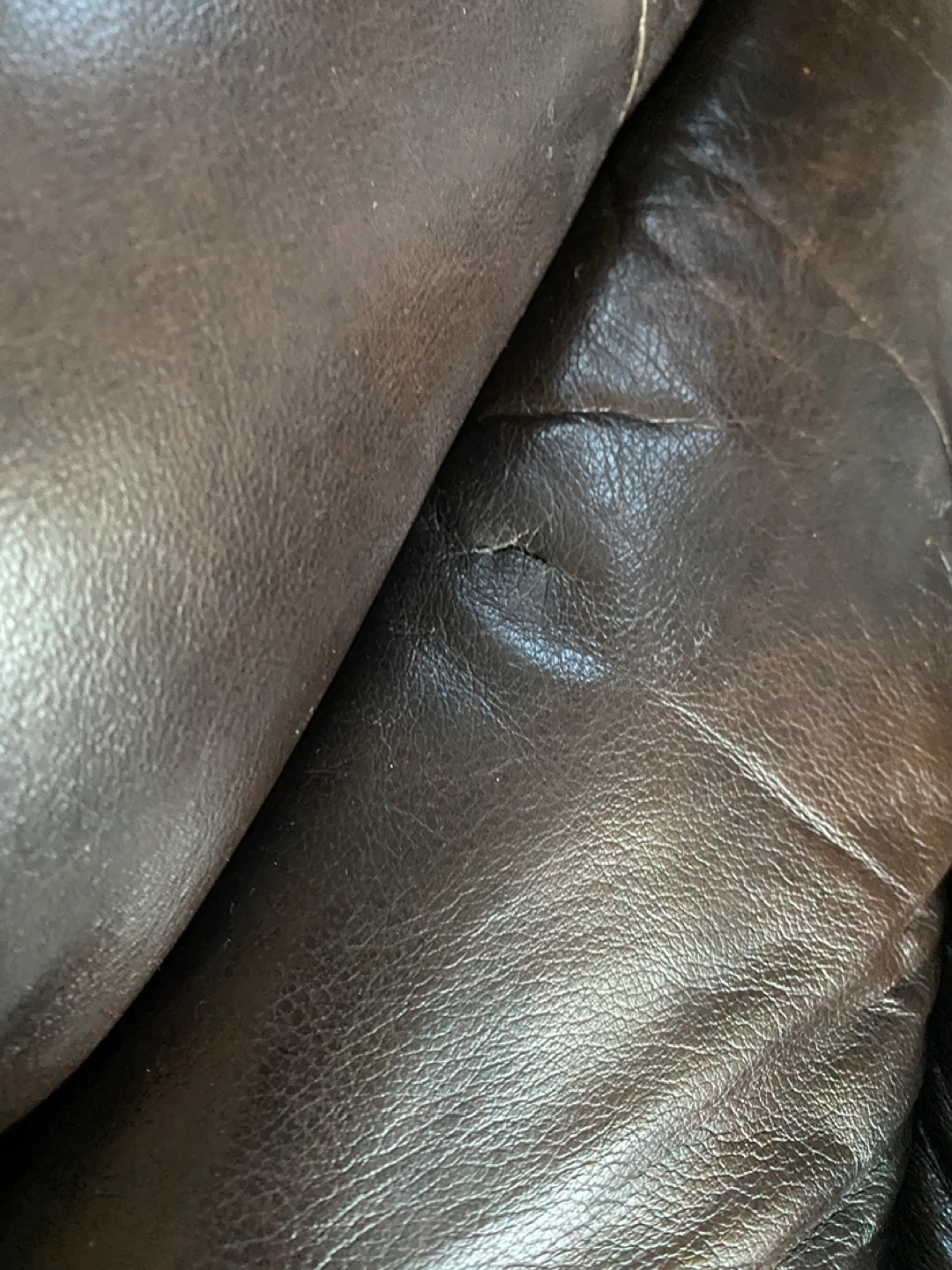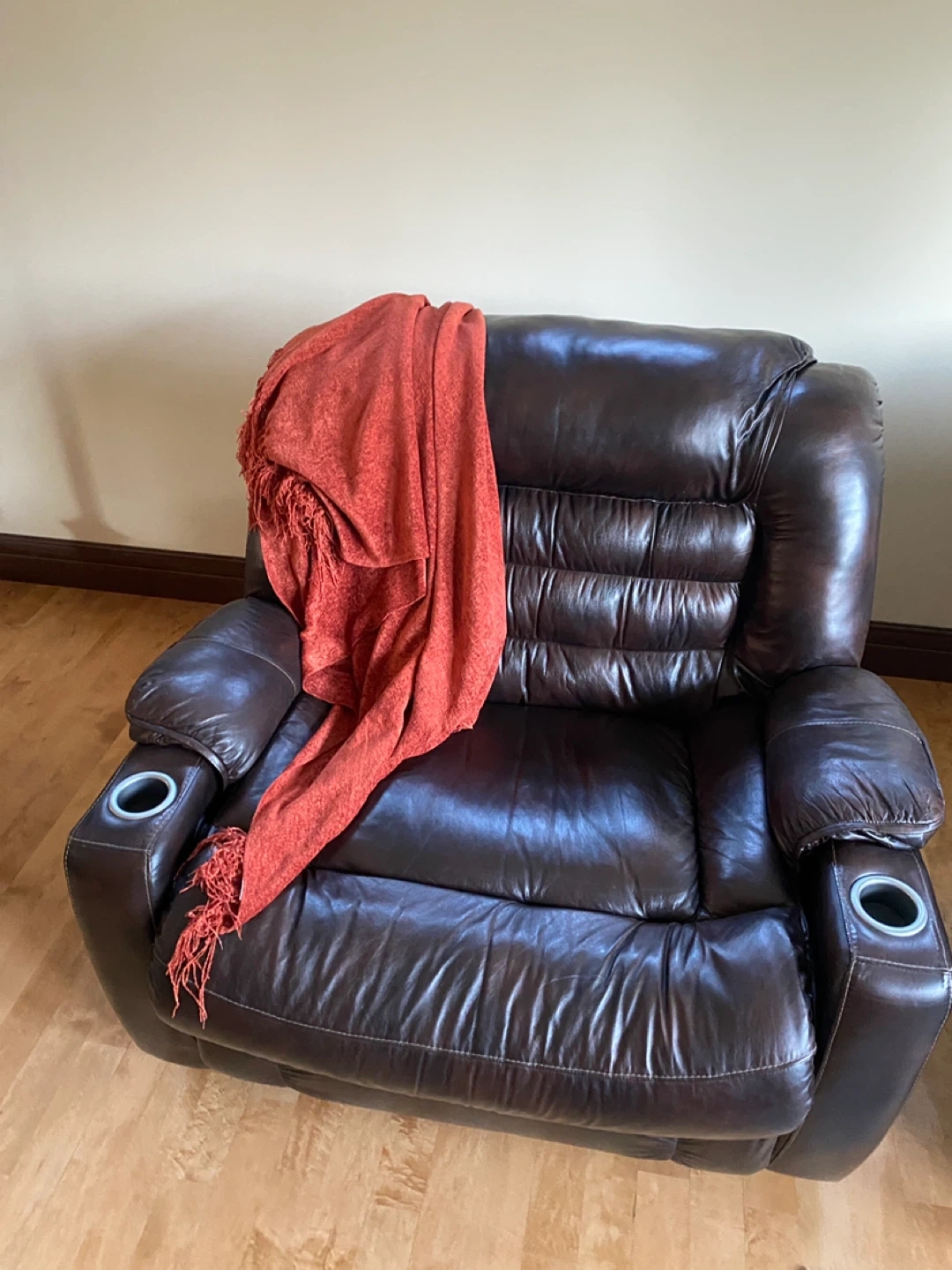I'm selling a comfy brown leather recliner chair! It has a few signs of wear from moving as shown in the pictures, but overall it's still super comfortable. Barely used as it was in our basement.You can purchase a leather repair kit online. Perfect for relaxing after a long day! Was $2400 new Asking 1/2 off retail will entertain offers. Moved and does not fit our new space. Full grain brown Italian leather extra plush with hidden side power to recline to whatever level you want. extra wide width for 2 people to snuggle or extra roomy & wide for 1 person. 4ft wide arm to arm Seat 33” wide Length from head rest to foot 6.5”-6.6” 3 reclining positions Perfect for tall people NW Sait area pick up Cash sale