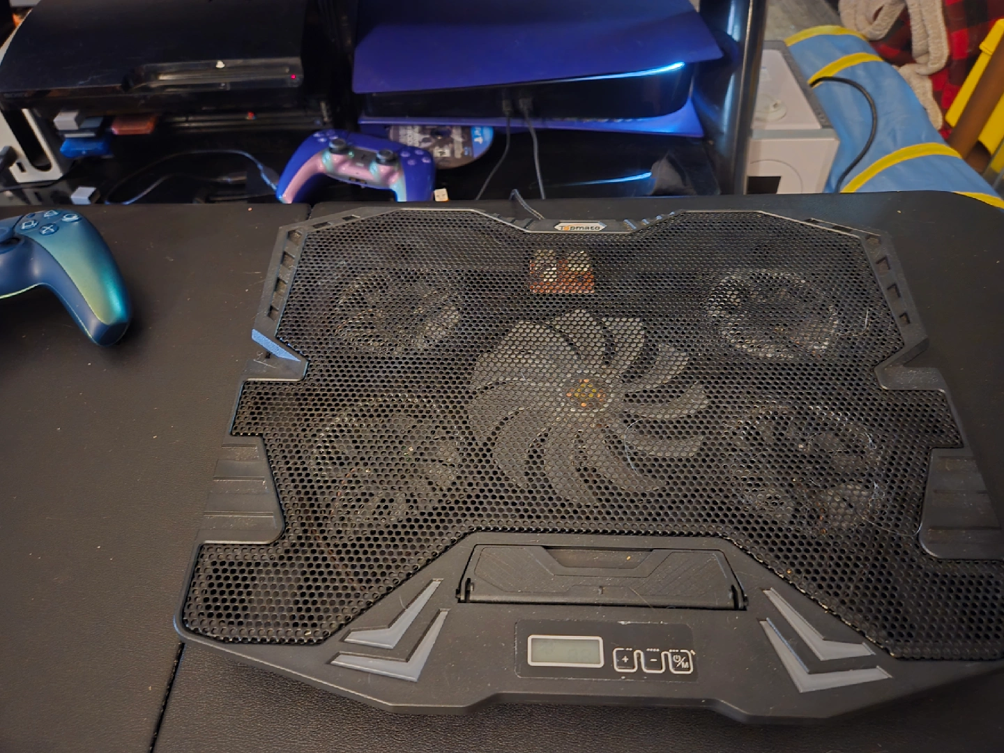 86Selling a laptop cooling pad. It has multiple fans to keep your laptop cool during intense use. It also features adjustable fan speeds and a sleek design to complement your setup