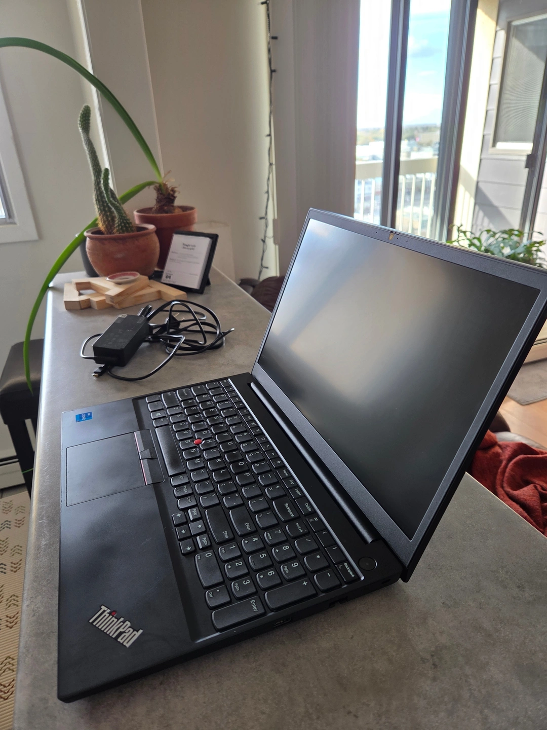 ThinkPad in excellent condition used only for work. Would be great for work or studies. Specifications: ThinkPad E15 Gen 2 (Intel) Model - 20TD00B7US Display - 15.6" FHD (1920x1080) TN 220nits Anti-glare, 45% NTSC, no pen or touch input is available for this display Processor - 11th Gen Intel(R) Core(TM) i5-1135G7 @ 2.40GHz 2.42 GHz Installed RAM - 8.00 GB (7.71 GB usable) System type - 64-bit operating system, x64-based processor Storage - 238 GB Graphics - Integrated Intel® Iris® Xe Graphics Functions as UHD Graphics Microphone - 2x, Array Camera - HD 720p with Privacy Shutter Battery - Integrated 45Wh Power adapter - 65W USB-C® (2-pin) WLAN + Bluetooth - Intel® Wi-Fi® 6 AX201, 11ax 2x2 + BT5.1
