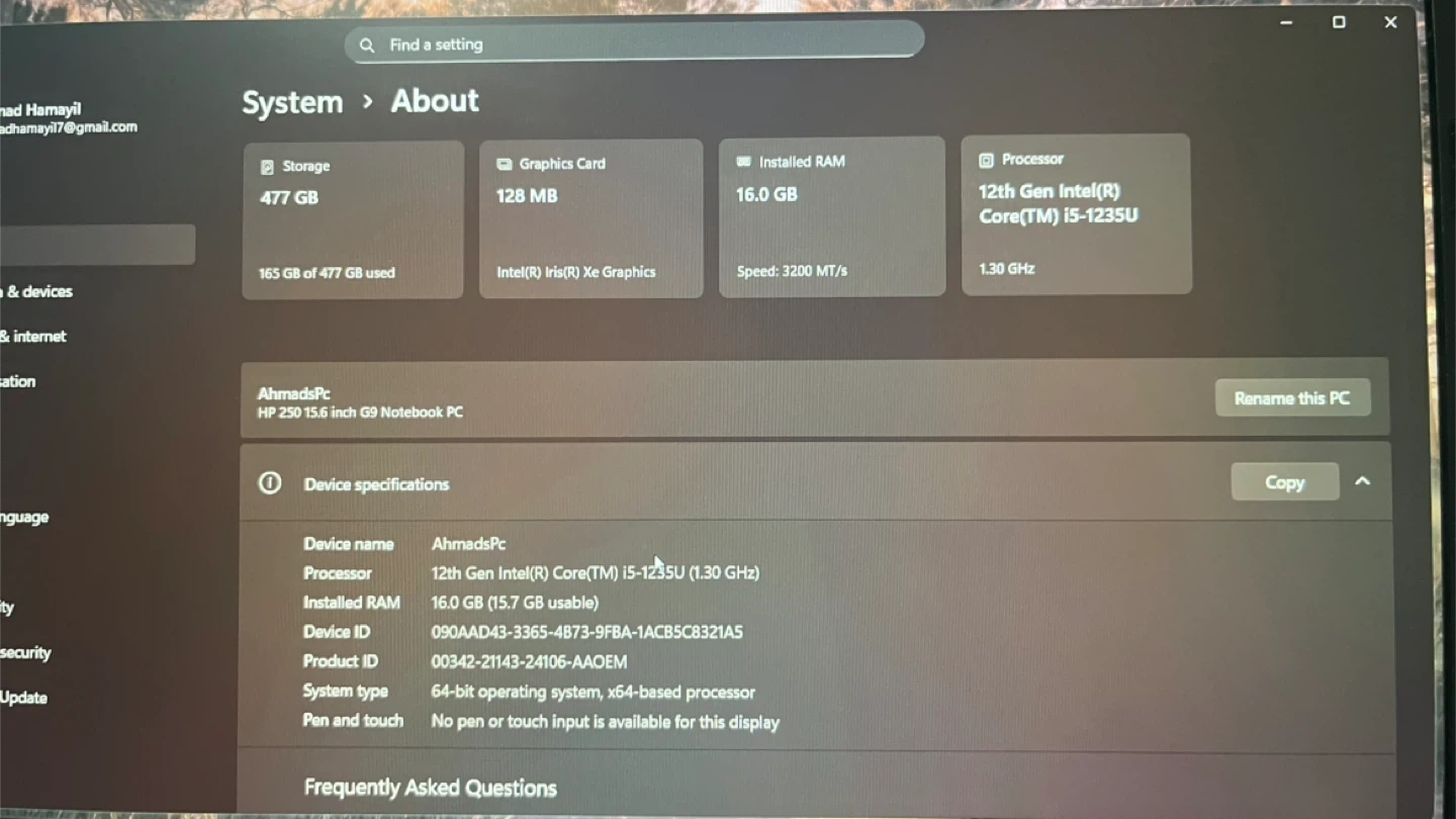 65💻 HP 250 G9 15.6” Laptop – 12th Gen Intel Core i5, 16GB RAM, 512GB SSD Specifications: • Model: HP 250 G9 15.6-inch Notebook PC • Processor: 12th Gen Intel® Core™ i5-1235U (10 cores, up to 4.4 GHz) • RAM: 16 GB DDR4 (3200 MHz) • Storage: 477 GB SSD (approx. 512 GB total) • Graphics: Intel® Iris® Xe Graphics • Display: 15.6” Full HD (1920×1080) • Operating System: Windows 11 (64-bit) • Condition: Excellent – runs smoothly, no issues • Battery: Holds good charge • Ports: USB-C, USB-A, HDMI, headphone jack, SD card slot • Webcam & Microphone: Built-in Performance: Fast and efficient laptop ideal for study, work, entertainment, or light gaming. Great multitasking capability with 16GB RAM and SSD storage. Extras: • Clean and ready to use • No scratches or damage • Keyboard and screen in great condition: used for a year and is in a good stat