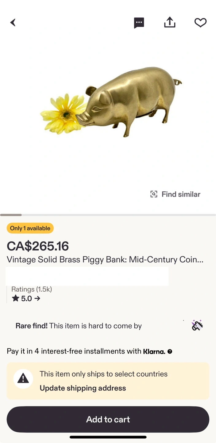 60This little piggy wants to go home. She is 6.5 lbs of brass measuring 16 x 8 x 6 inches. Rare and collectible, would be a nice home decor item. Compare at double or triple the price!