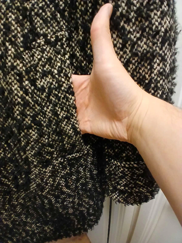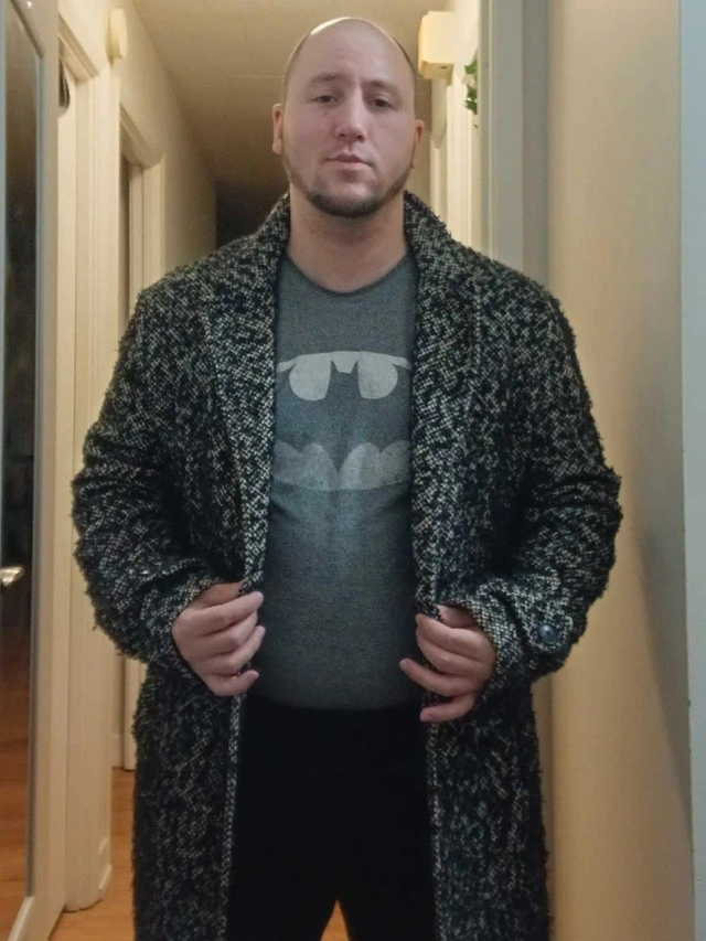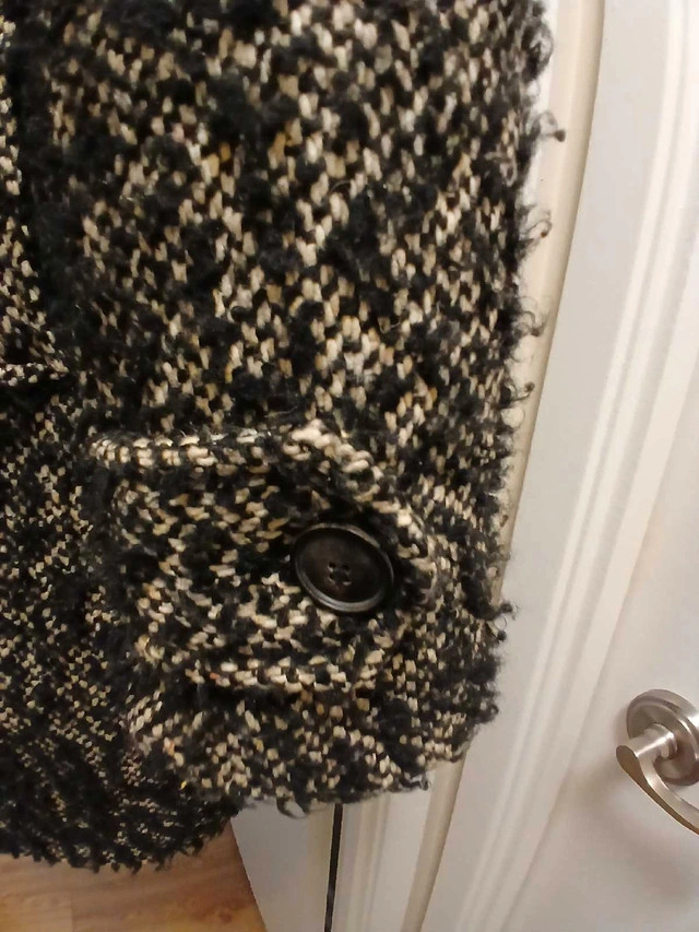 83Coat was originally $300. As pictured, the middle button is missing, but it doesn't affect closing the coat. For reference, I am 5'7" and 205lbs, and the coat fits fine. Cash only, please.