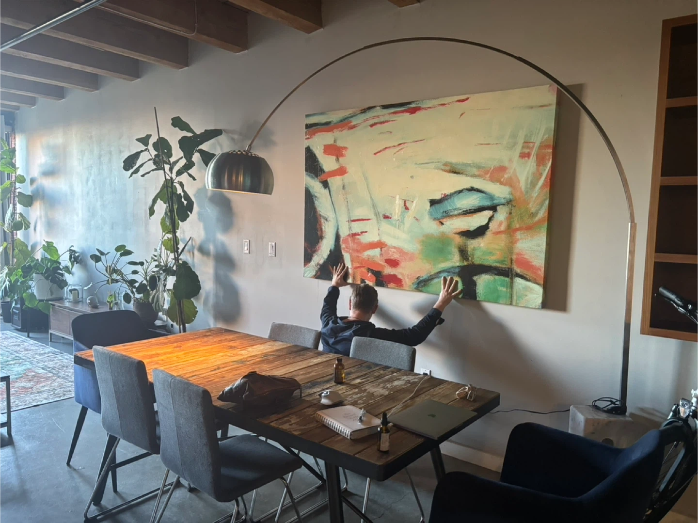 97Here's a vibrant abstract painting on canvas. It would look great in any room!