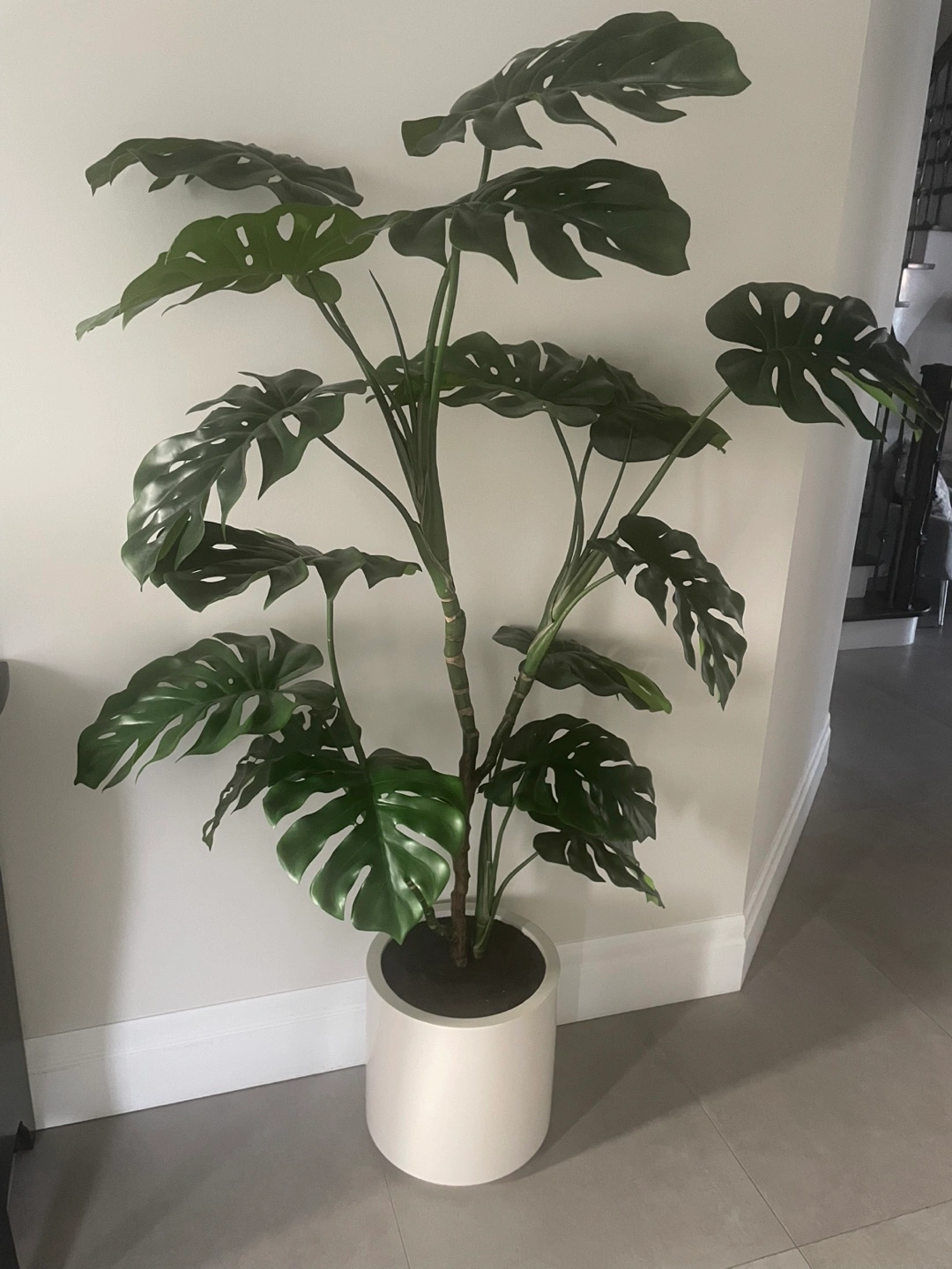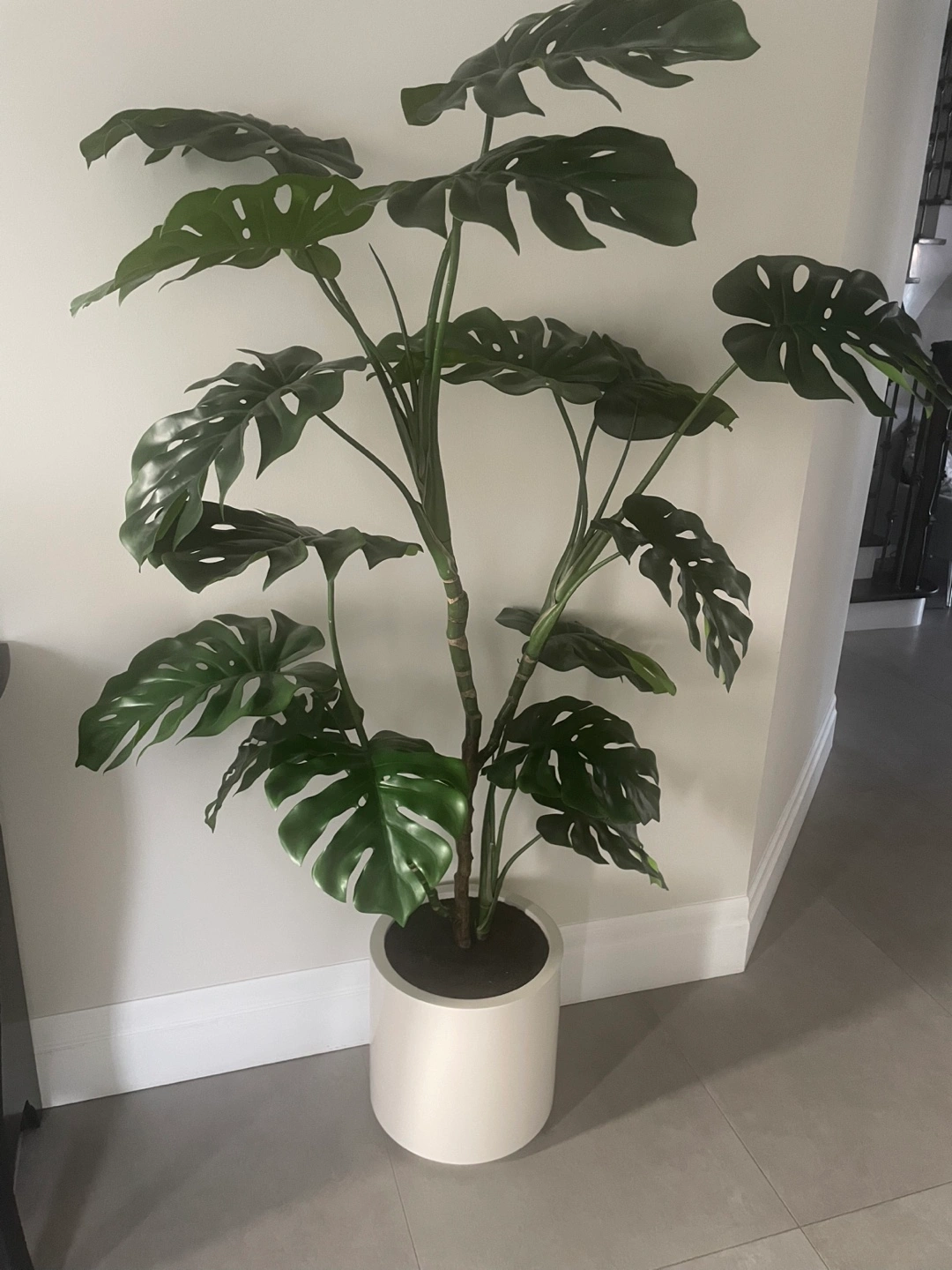 Tall artificial monstera deliciosa plant. Planter included. Looks great in a corner or entryway. Adds a touch of greenery without the maintenance.