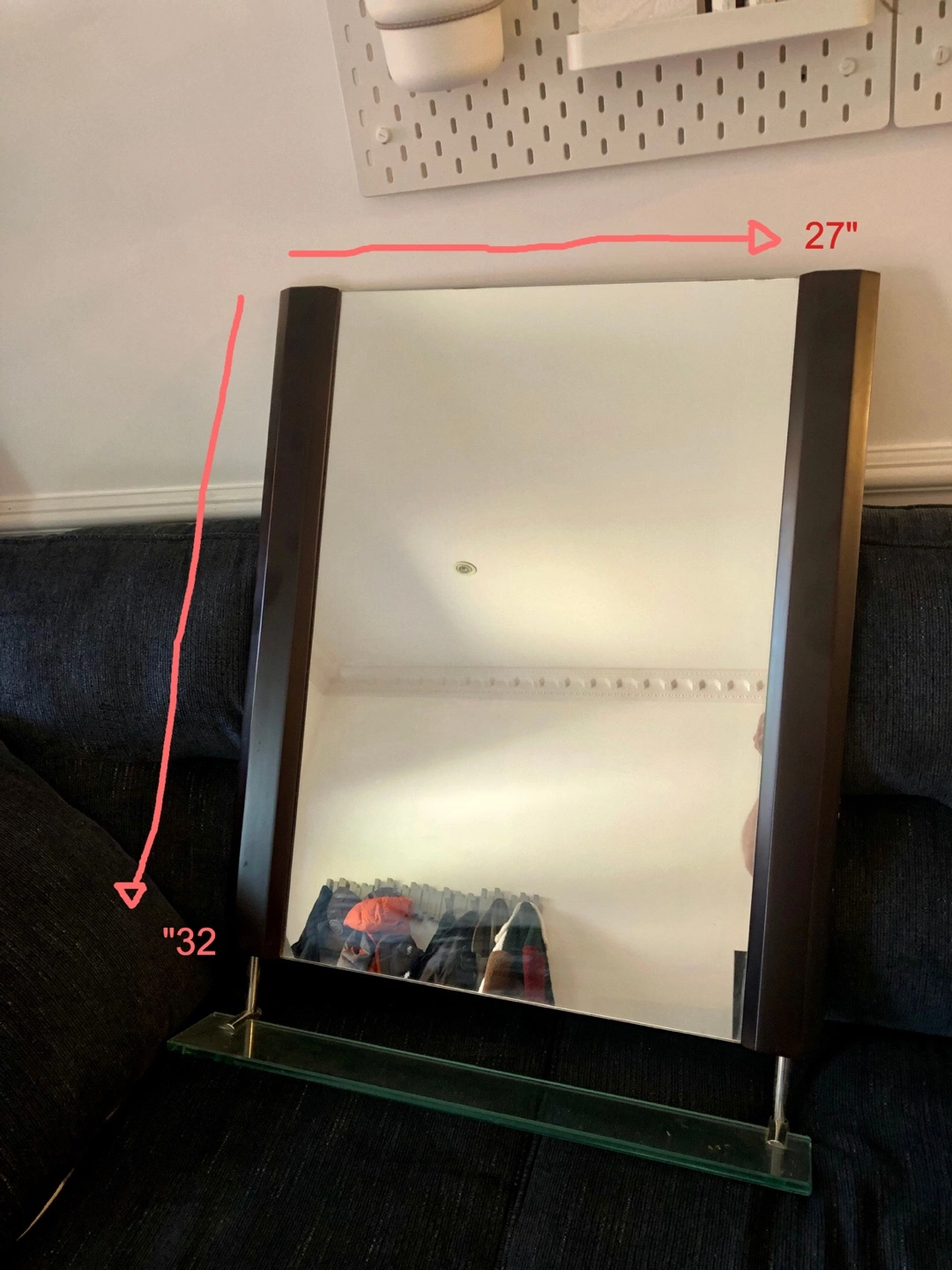 52Sturdy wooden frame. Has a small glass shelf at bottom. You’ll look great in this!