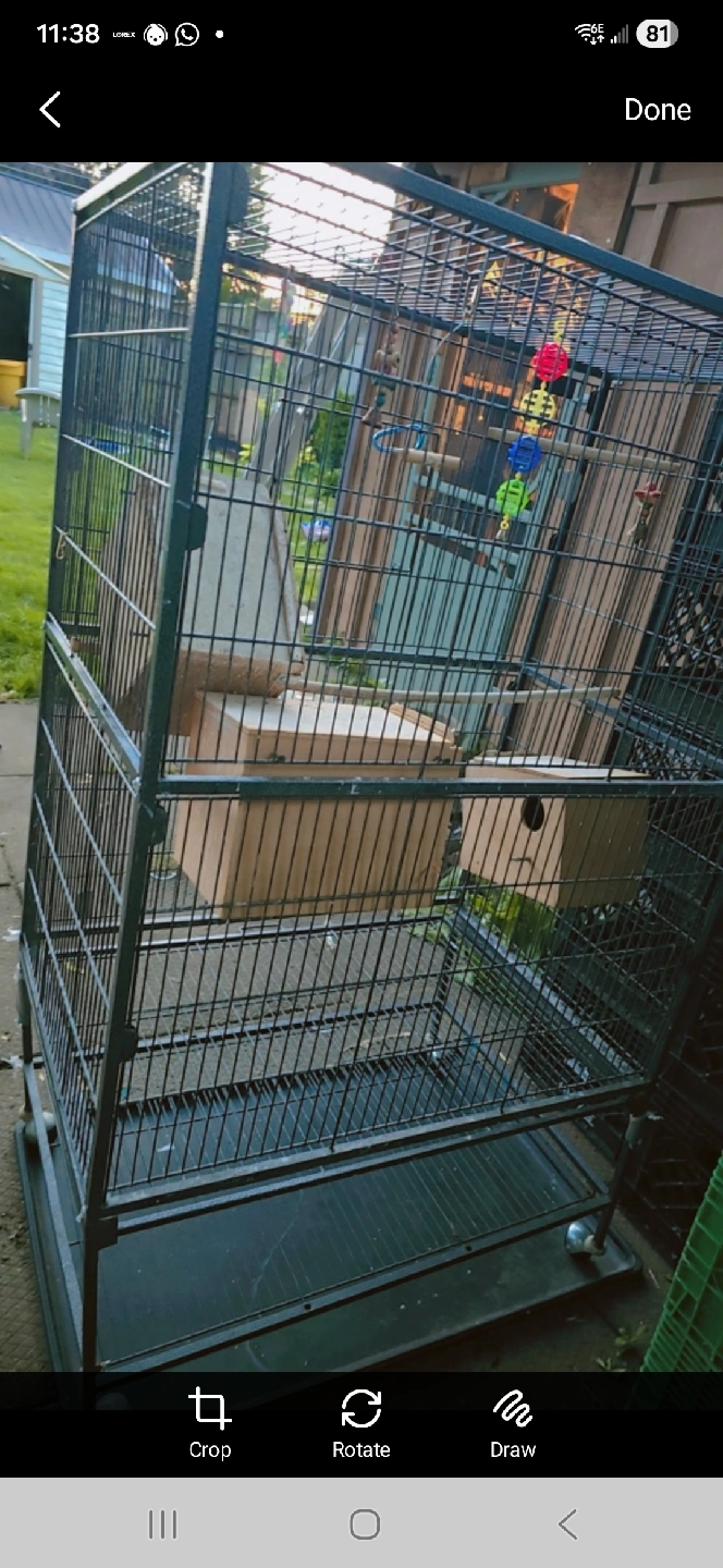 15Selling a large bird cage that's perfect for your feathered friends! It comes with a few accessories to keep them entertained and comfortable. The cage is in good condition and ready for a new home