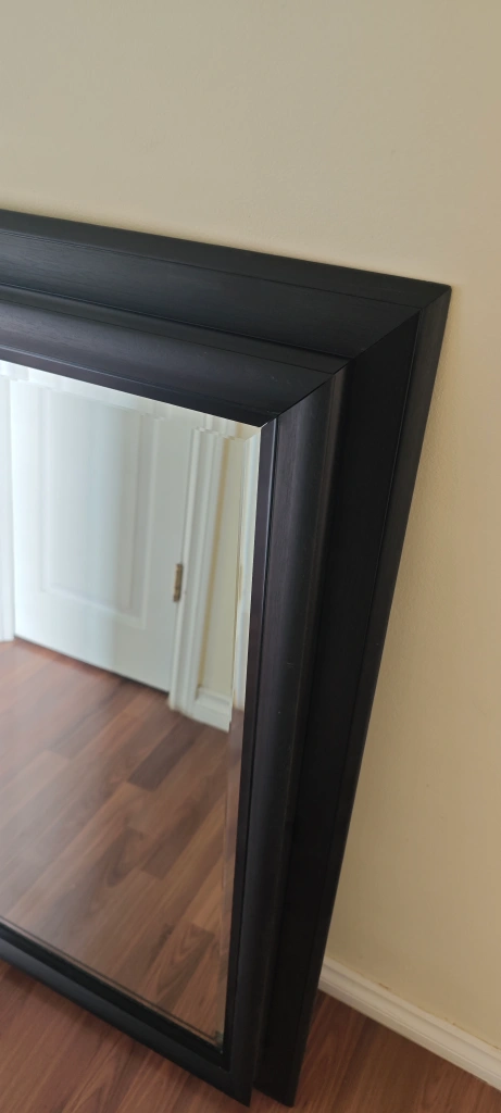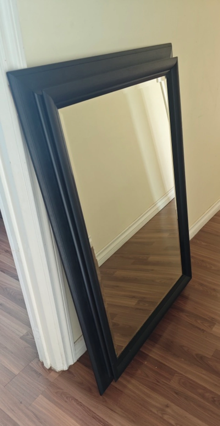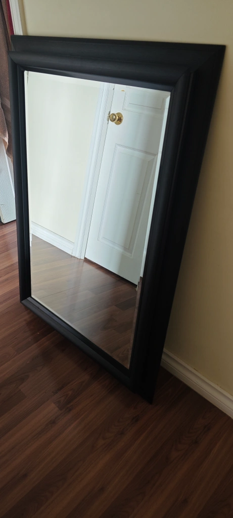 18Large rectangular mirror. Black frame. Good condition. Perfect for a bedroom or hallway. 80cm wide x 115cm height