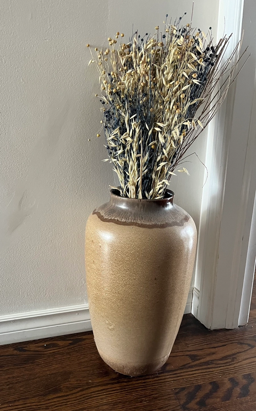 Tall ceramic vase. Brown top gradually fades to beige. Great for home decor.