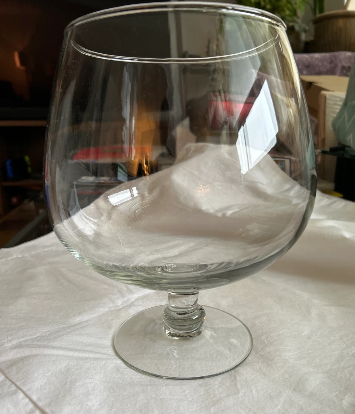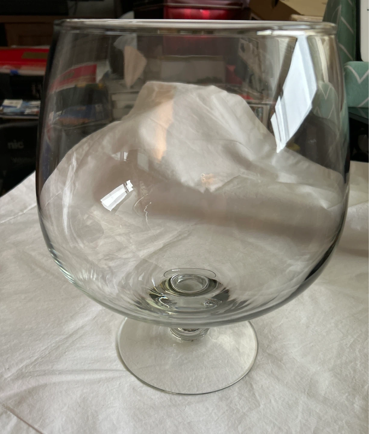 Selling a large clear wine glass- shape glass bowl, perfect for using as a trifle bowl or as a vessel for sangria or other wine drinks. It's in great and very clean condition and ready for a new home. It was only use for trifle desserts. If you’re interested I can give you the dimensions. Please view all of the photos provided. Smoke/Pet free home. Cash & pick up only.