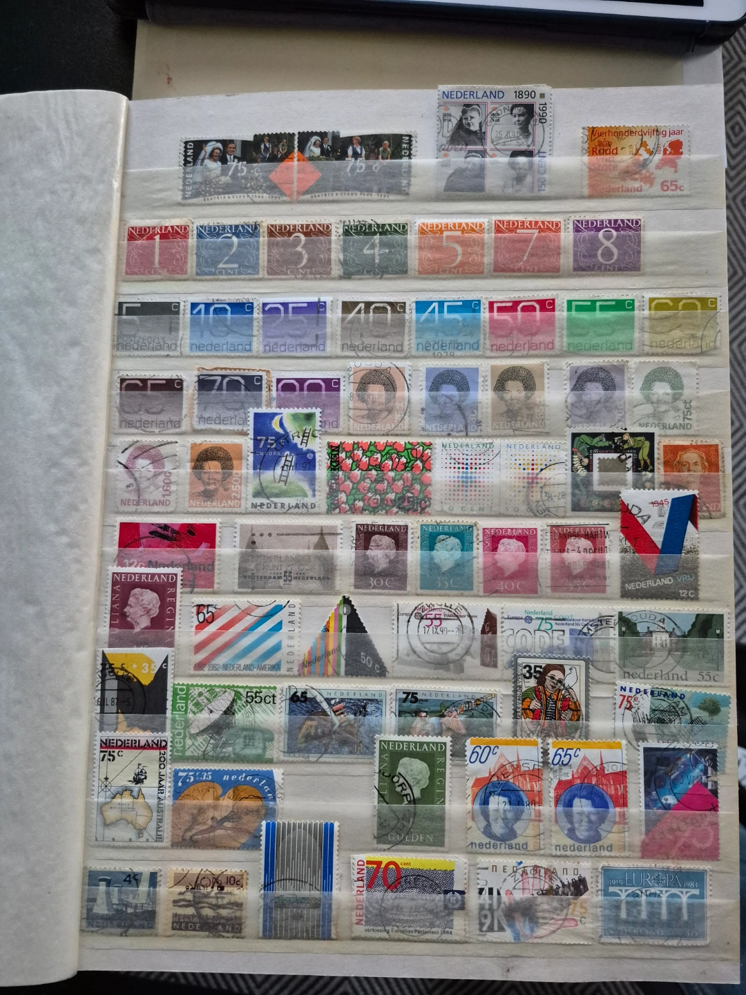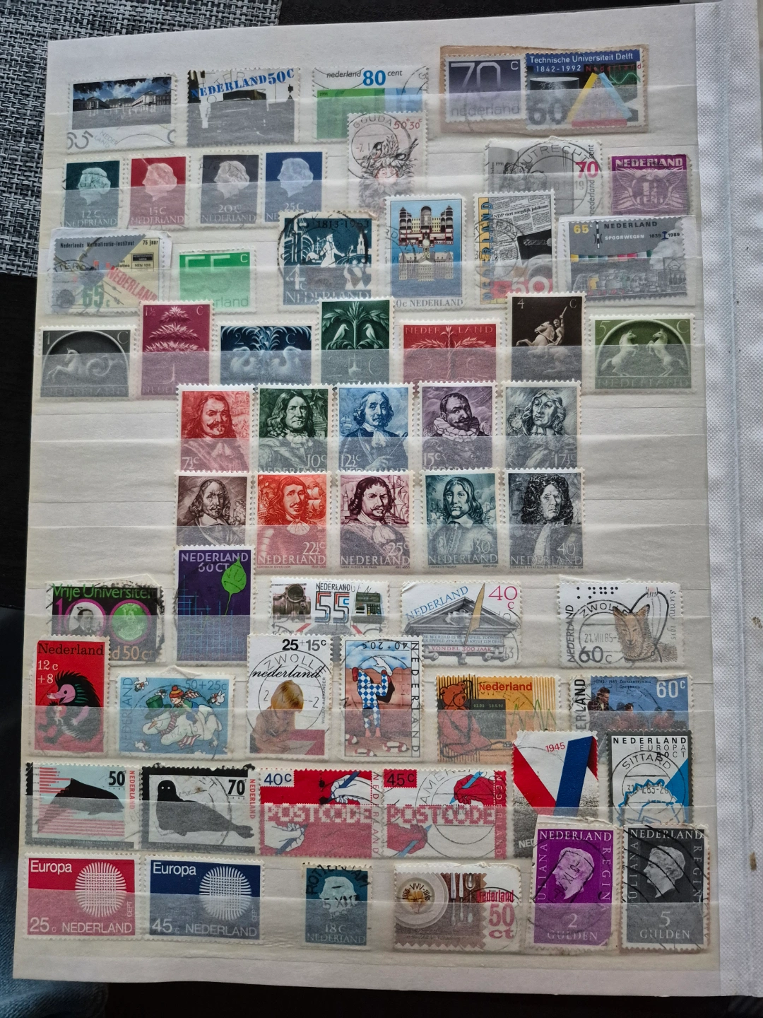 65Extensive collection of postage stamps. Includes Netherlands and other countries like USA, Mexico, Ecuador, and Spain. Many stamps featured. Album included. Great for collectors.