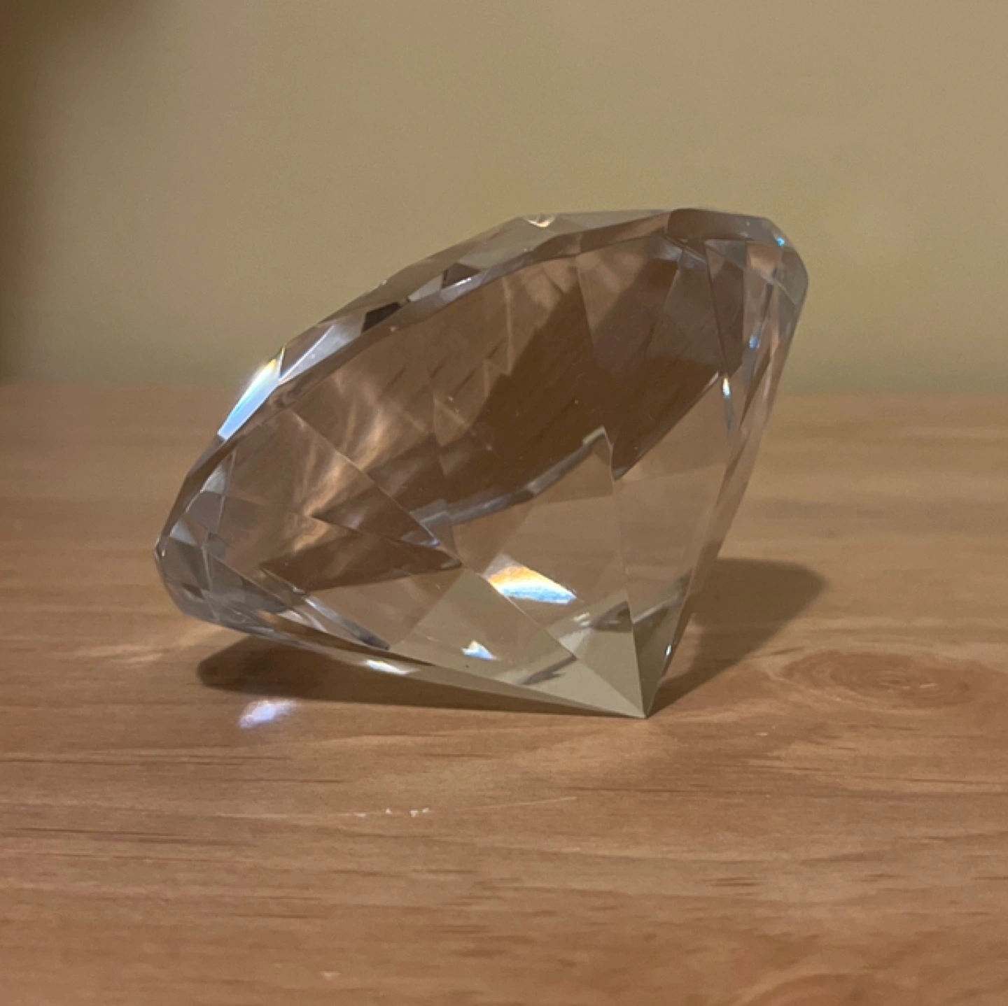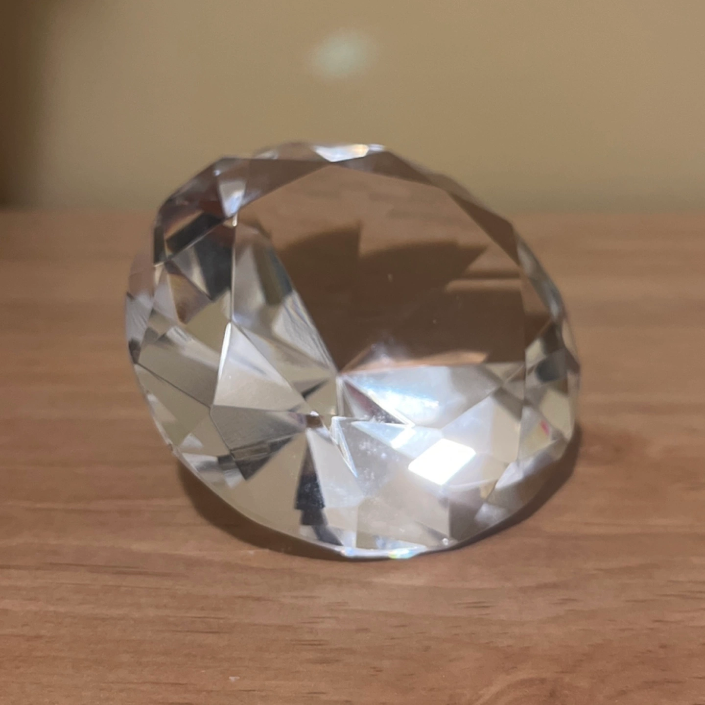 133Large clear crystal paperweight. Looks like a diamond. Great for a desk or shelf. Adds a touch of elegance.