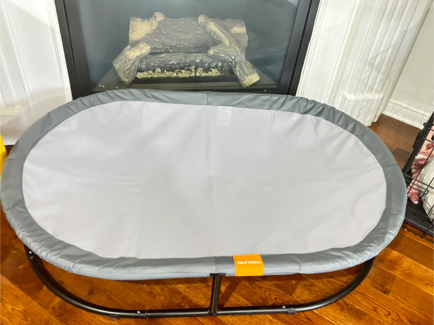 18This elevated pet bed is in great condition. It's perfect for keeping your furry friend cool and comfortable. The bed is grey and features a sturdy frame. It's easy to clean and provides great support for your pet 44x28 inches