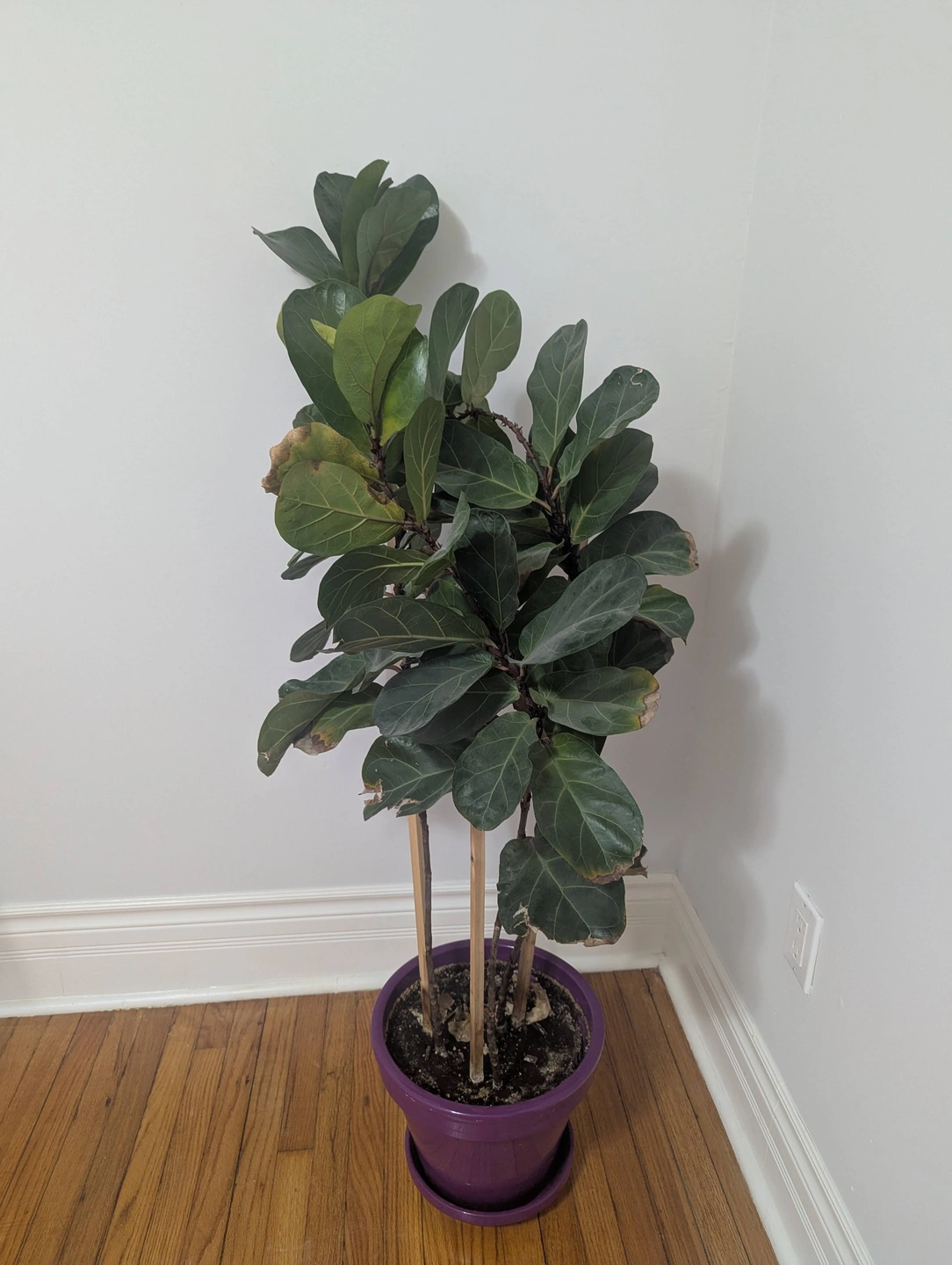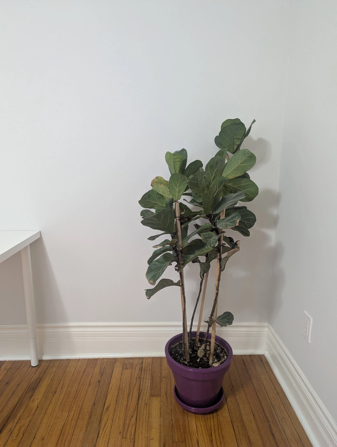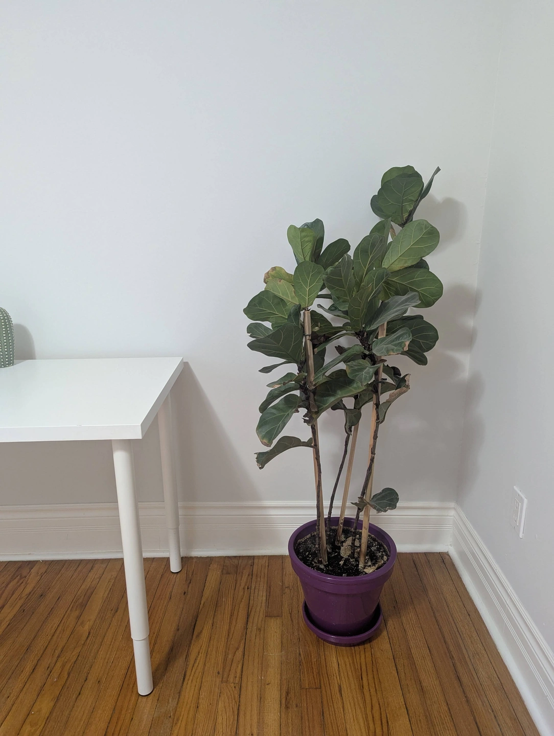 133Make a bold statement with this impressive Fiddle Leaf Fig (Ficus lyrata)! Known for its large, lush leaves, this plant is a popular choice for adding a touch of sophisticated greenery to any room. It comes potted in a vibrant purple planter with a matching saucer. Price: $45 (includes plant & pot) Pick up in Queen West.