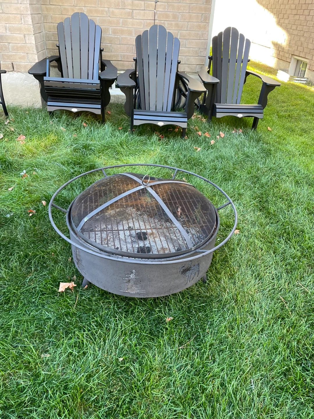47Selling a large fire pit, perfect for those cool evenings in the backyard! It comes with a spark screen to keep everyone safe and cozy around the fire. Has a grill top as well. It has a rustic look with a moose and tree design on the side. Ready for pick up and your next outdoor $250