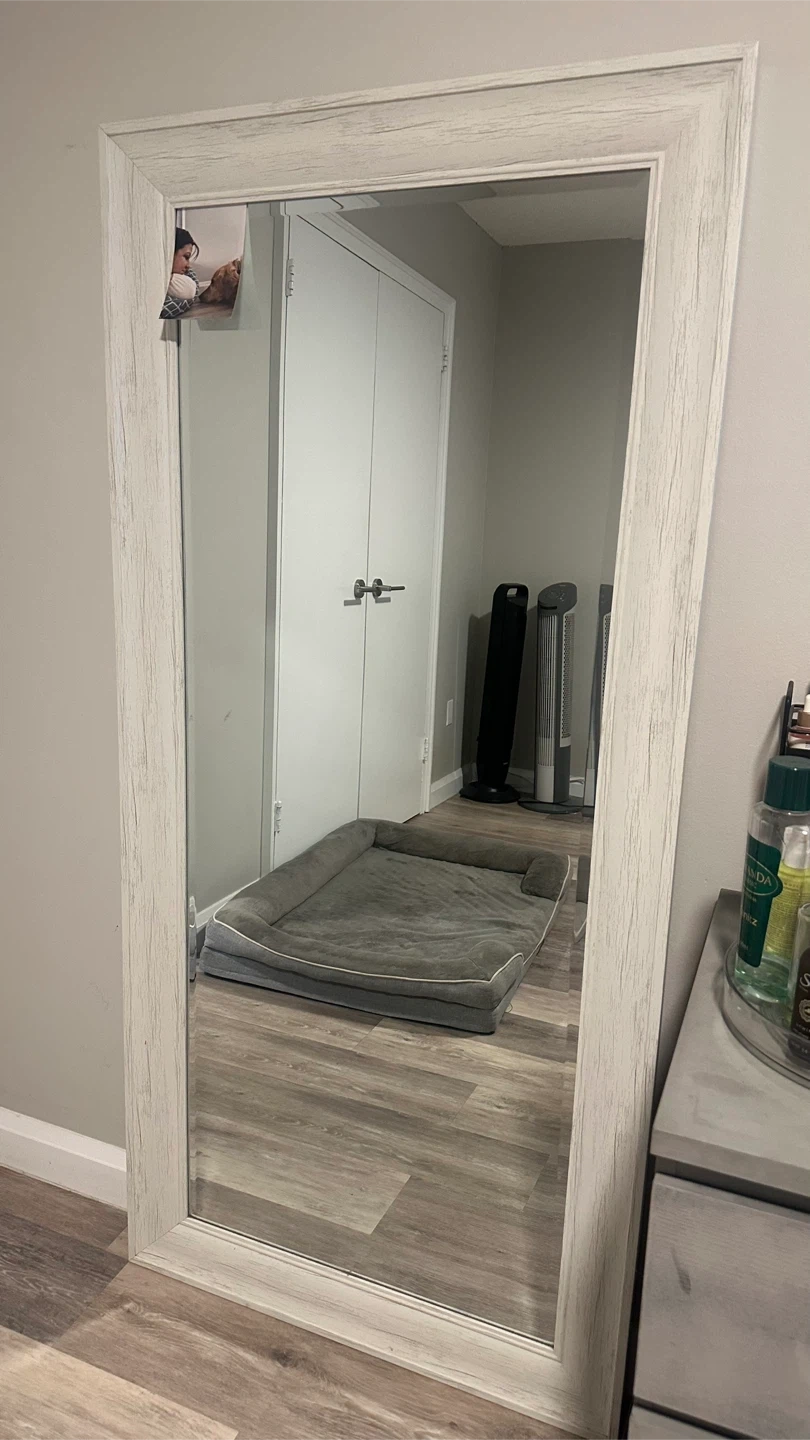 190Here's a large mirror with a whitewashed wood frame! It measures approximately 65 inches in height and 30 inches in width. It's a great statement piece for any room!