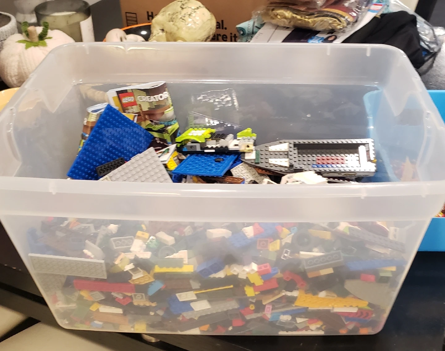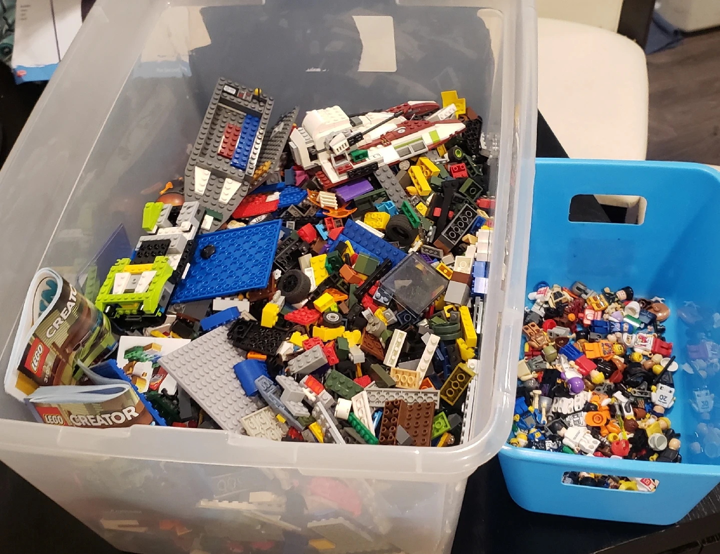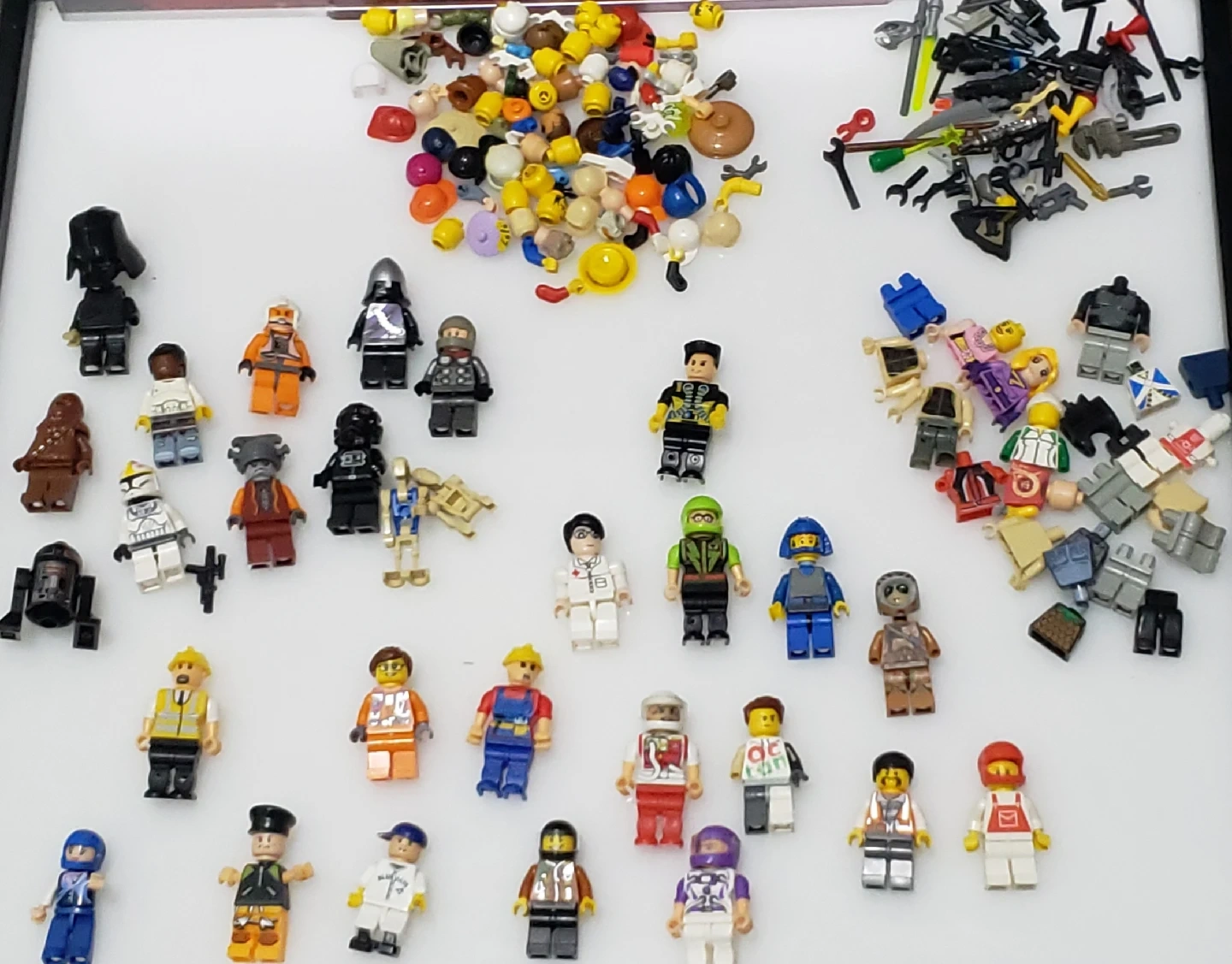 Selling a big lot of Lego pieces and minifigures! There's a variety of pieces from different sets, plus a bunch of minifigs to add to your collection or start a new one. posted pictures of the some figurines just to show you what kind of Lego is in there there's also lots of those pieces in the lot as well Big Bin almost full