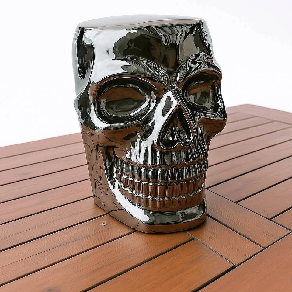 Similar ones selling online for $2,000 see lat photo. Mexican Silver Metallic Skull Stool / Side Table. Bold and eye-catching, this reflective silver skull doubles as a stool or side table. Great for modern, gothic, or eclectic spaces. Sturdy, stylish, and a guaranteed conversation starter.