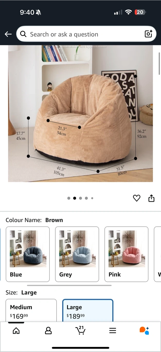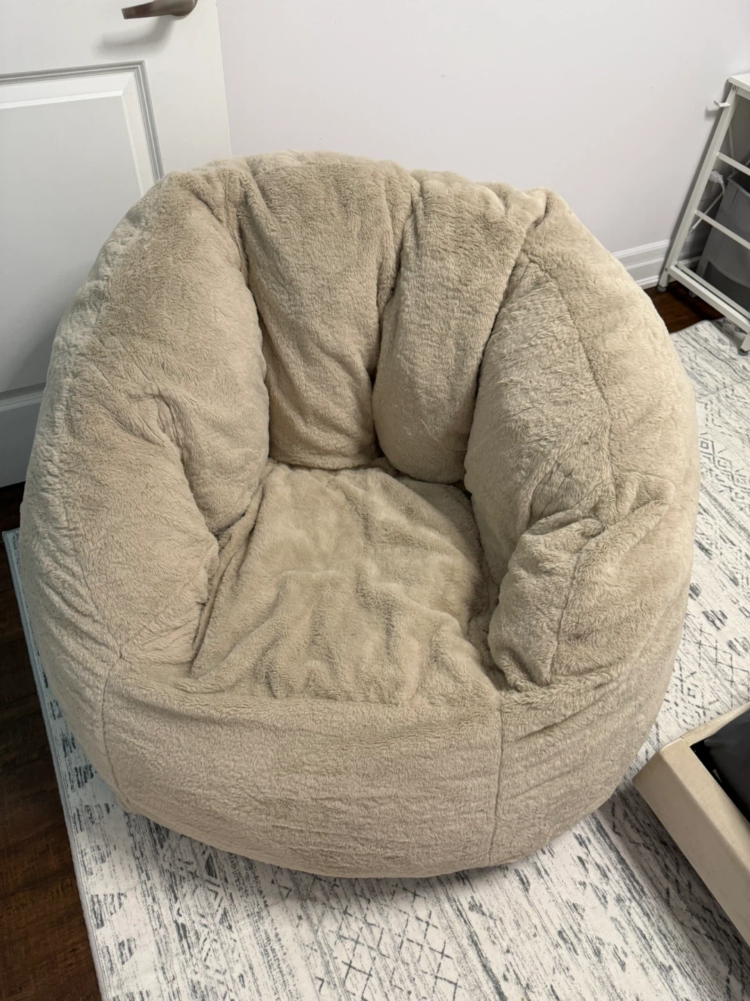 25Large Plush Bean Bag Chair – Beige Condition: Brand new, only opened for photos Soft and cozy bean bag lounge chair in beige color. Filled with high-density foam that expanded perfectly after unpacking — ready for use. Originally vacuum-sealed and stored in the green cover (shown in photo). 📏 Size: Large (approx. 41”W × 36”H) 🎨 Color: Beige 🧵 Material: Soft plush cover, removable and washable 💺 Filling: N&V high-density foam grains ✨ Features: • Extremely comfortable and supportive • Perfect for reading, gaming, or relaxing • Cover can be removed for cleaning • Modern design fits any interior • Ready to use — already fully expanded 💲 Price: $160 🆕 Amazon price: $189.99+ tax!!! 📍 Pickup in Waterloo 🚗 Delivery available
