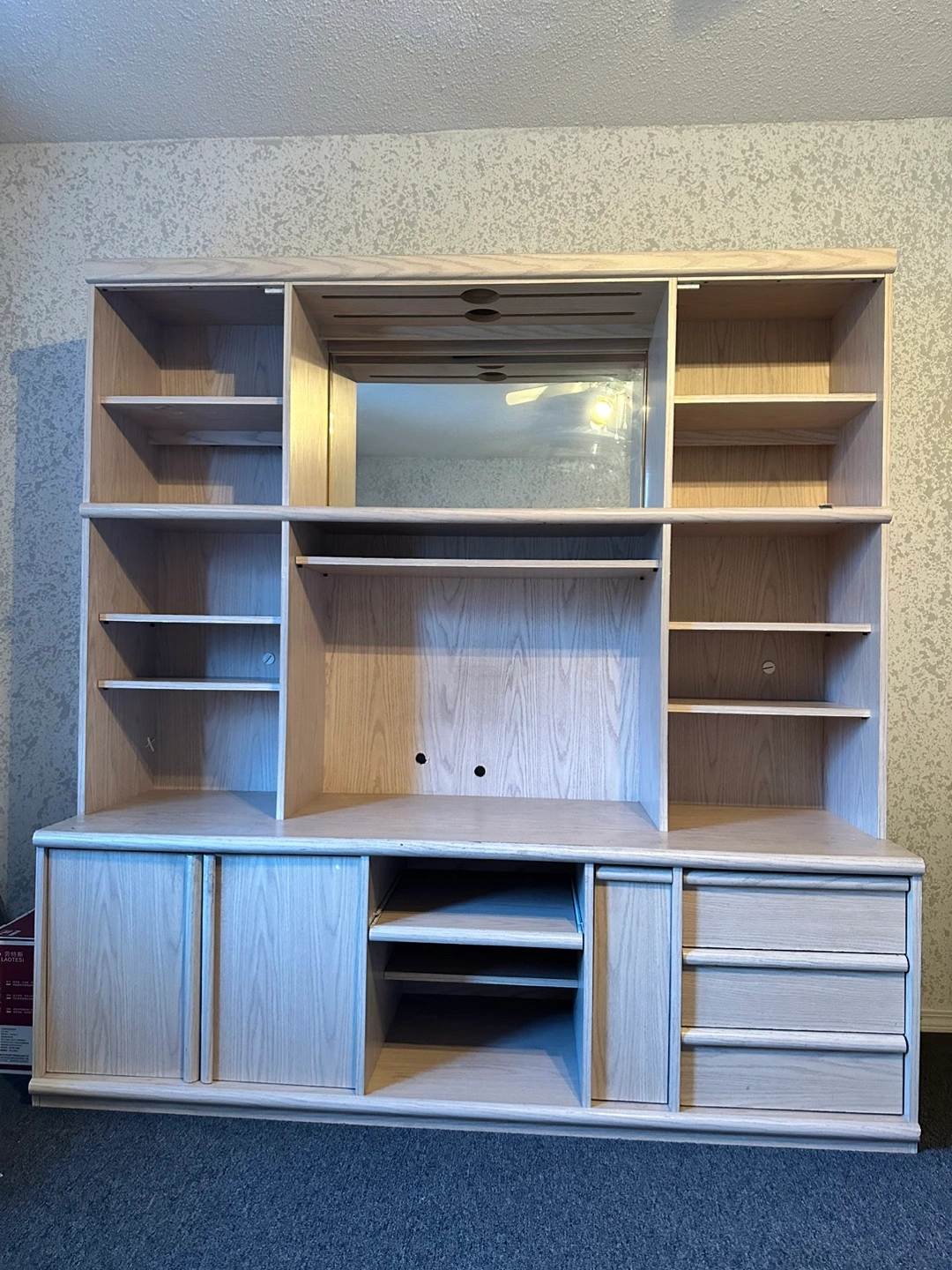 HomeBuy and sellLarge Wooden Entertainment Center with MirrorAileenMission Hill Park241 reviewSoldLarge Wooden Entertainment Center with MirrorFurniture · $5Large entertainment center. Multiple shelves and cabinets. Features a mirror. Good storage.ConditionGoodWhere to meet4 chats·2 favourites·131 viewsGet the Karrot appOther listings by AileenBlack Metal Headboard bed$200Mission Hill ParkBlack Glass TV Stand with Wood Accents$10Mission Hill ParkMid-Century Modern Round Glass Dining Table$5Mission Hill ParkBlack Faux Leather Futon Sofa Bed$10Mission Hill ParkPopular on KarrotShow allLarge Wooden Wall Unit/Entertainment Centre$220City of VernonSolid Oak China Cabinet$350E Bella Vista HighlandsFull Length Mirror$32BrentwoodBlack Metal Headboard bed$200Mission Hill ParkDark Brown Desk with Hutch & Drawers$175EnderbyDresser$150Vernon