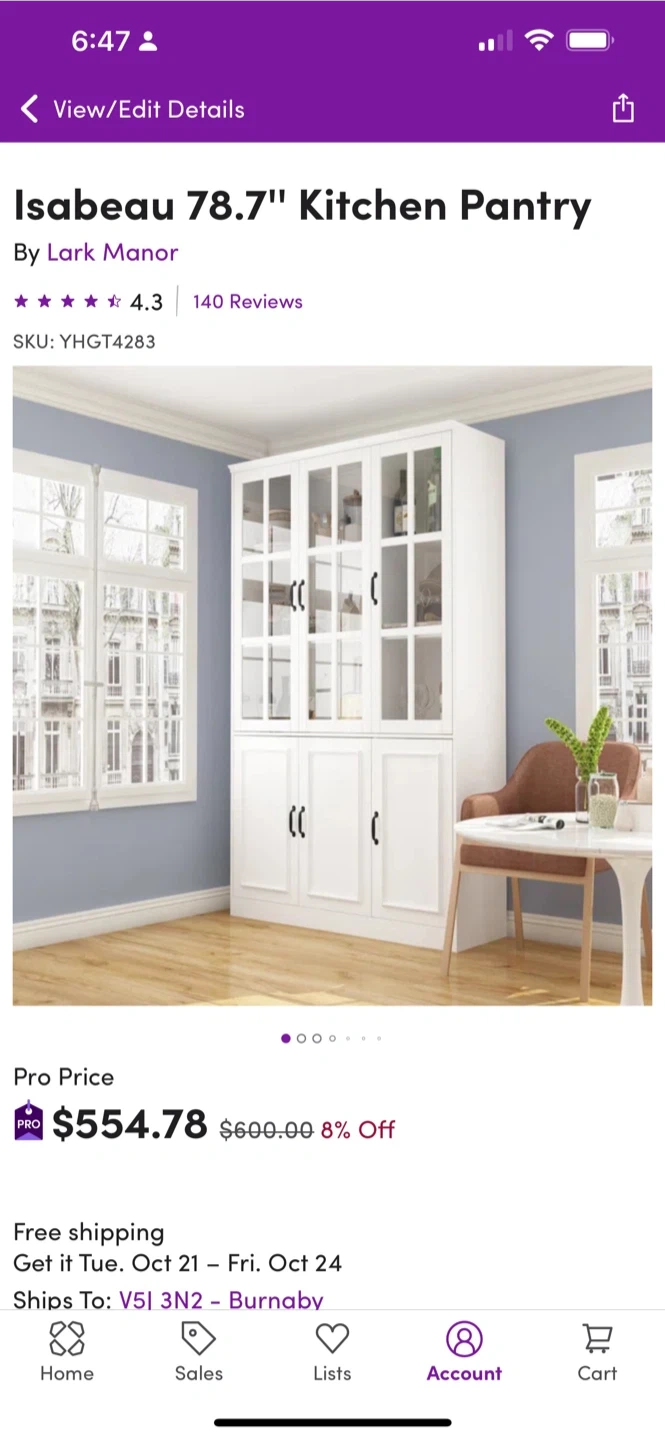 Selling a Lark Manor Isabeau kitchen pantry in white! It's in great shape and ready to add some storage to your kitchen or dining area. Key specs: - Dimensions: 78.7" H x 47.2" W x 15.7" D - Weight: 150 lbs Originally bought for $554.78