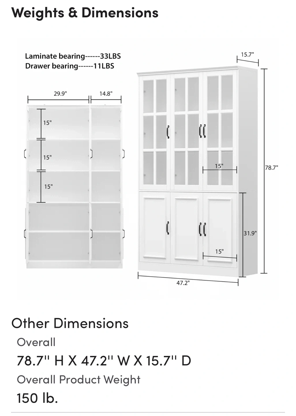 - Dimensions42.2” Wx 78.7”Hx 15.7D
