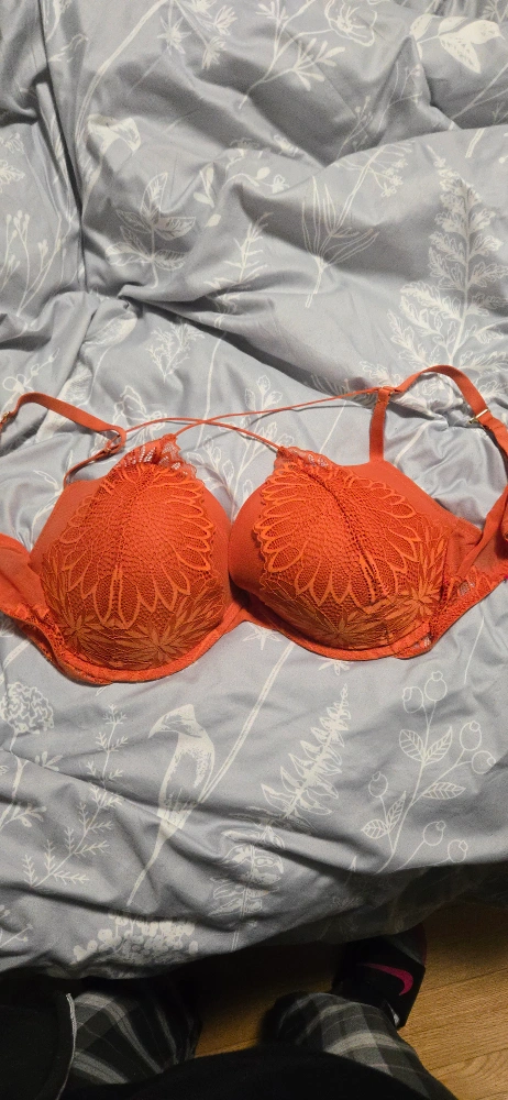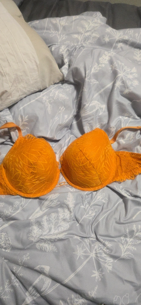 Bundle of three La senza bras. 2 orange, one black with red lace accents. Both are wired bras with adjustable straps. Sizes shown in images. $20 for all or $5 each