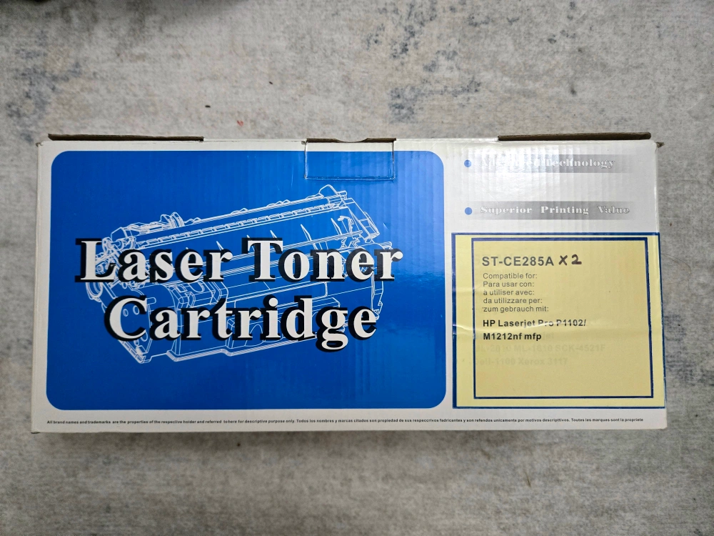 33Selling a set of two HP ST-CE285A laser toner cartridges. These are compatible with HP LaserJet Pro P1102/M1212nf mfp printers. The box is included! BOTH ARE EMPTY. YOU CAN REFILL THEM AND USE THEM AS SPARES.