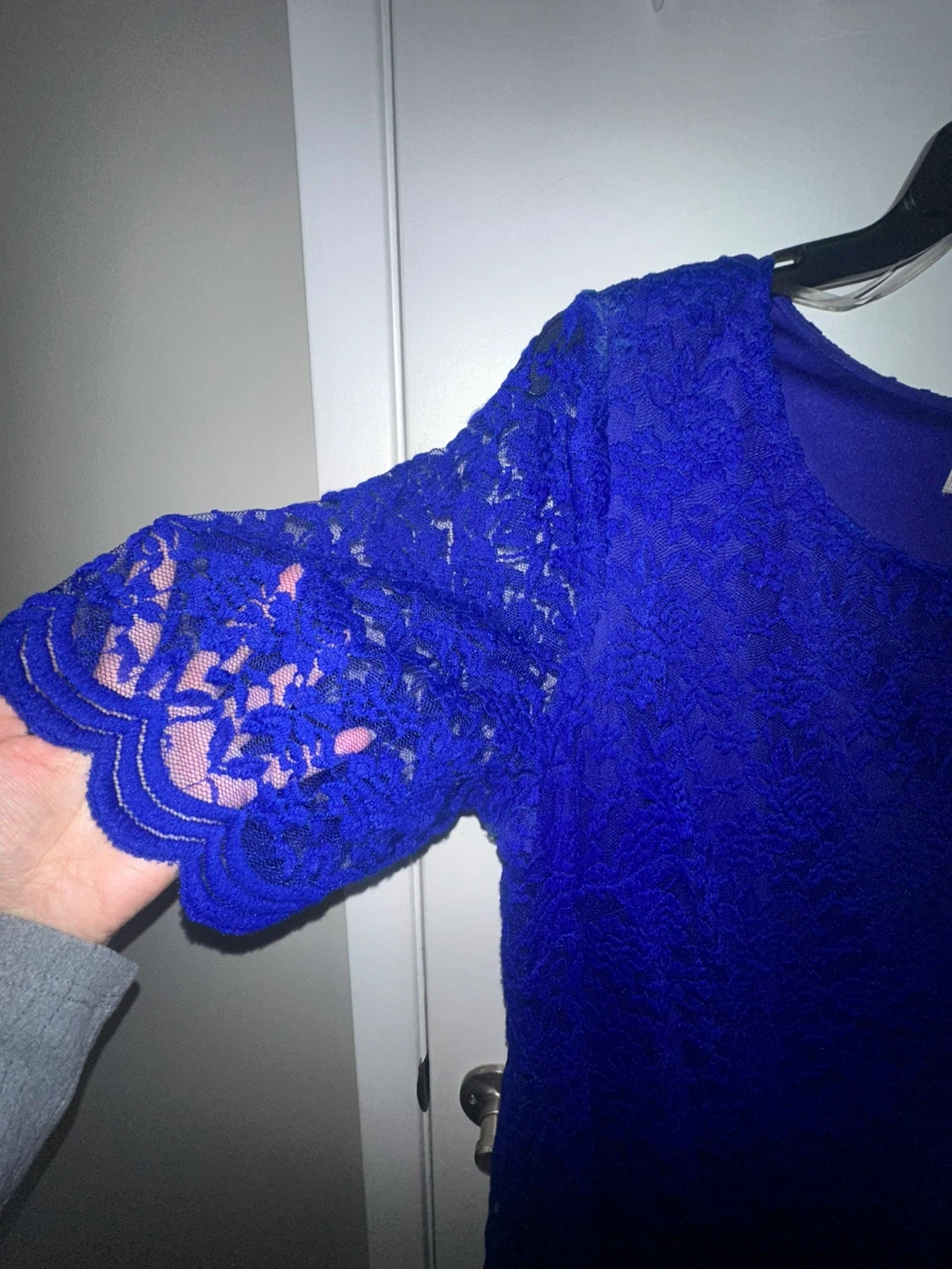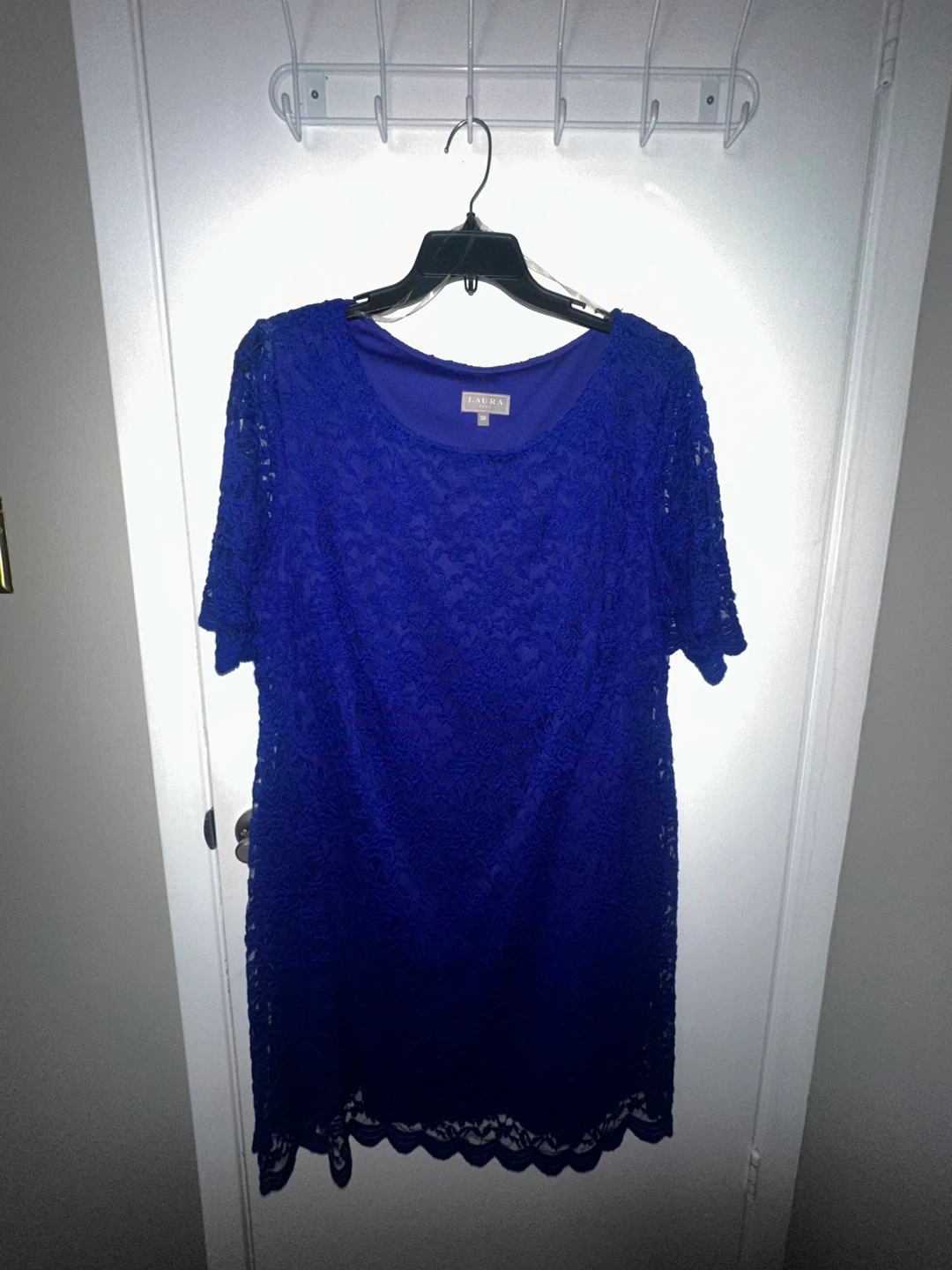 15Selling a beautiful Laura Plus dress in a vibrant blue! It's a size 20 and features a lovely lace overlay. Perfect for a special occasion or dressing up for a night out