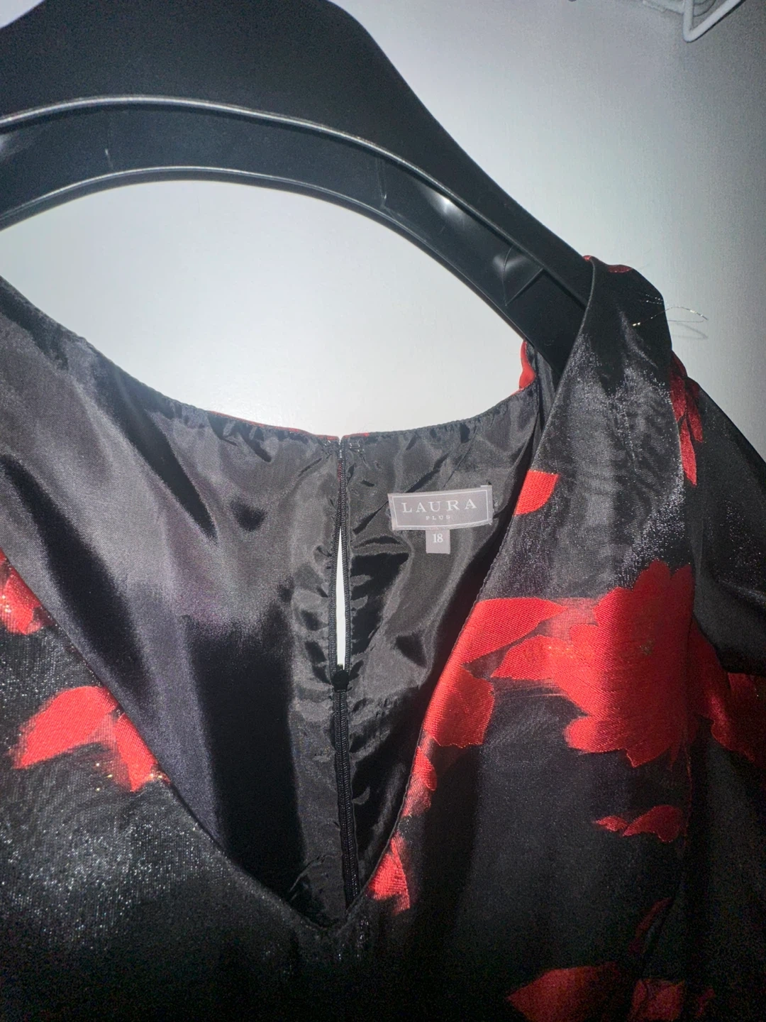 Laura Plus Club dress in size 18! It's a black hi-Lo dress with a red floral pattern. Perfect for a special occasion or a night out *Never been used