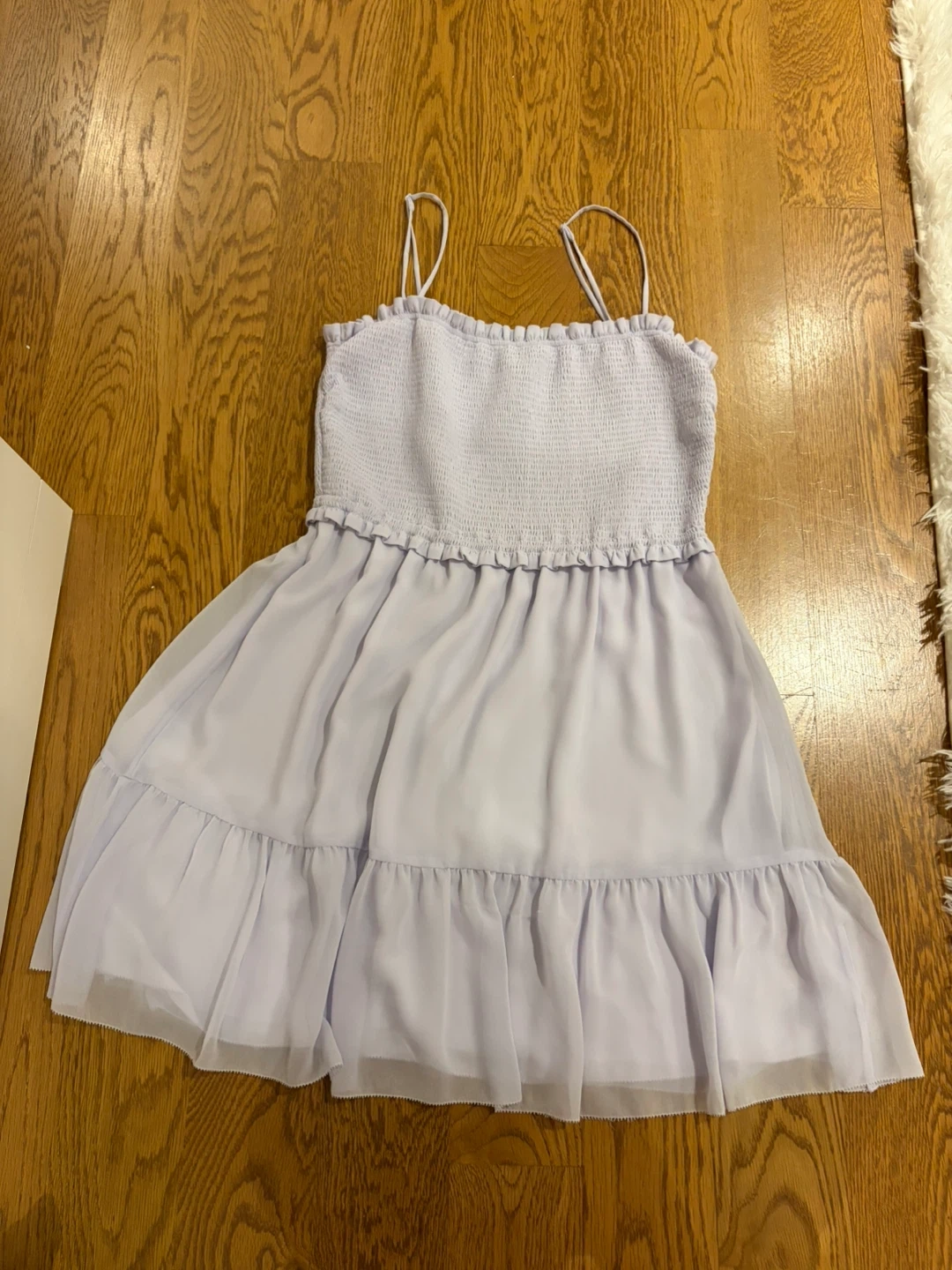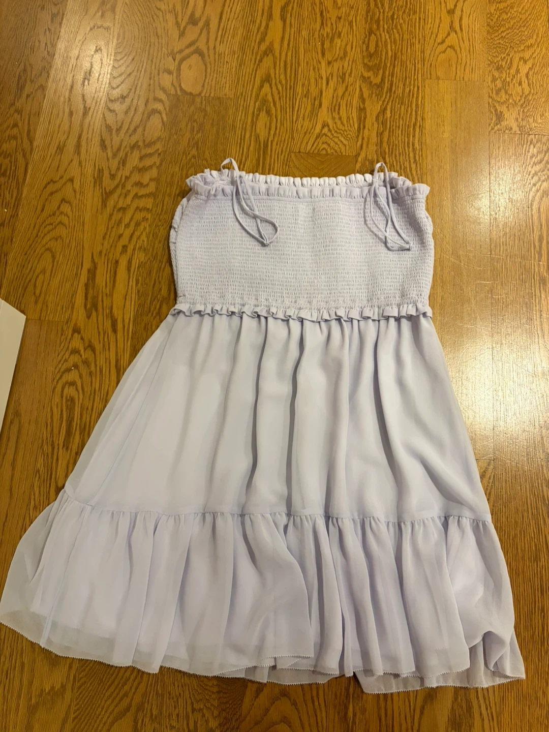 10Here's a cute lavender mini dress! It has a smocked bodice and a flowy skirt with ruffles. Perfect for summer! This is from Artizia.