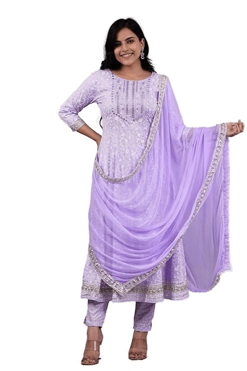 A beautiful lavender salwar kameez suit, perfect for a special occasion or everyday wear! The delicate embroidery and elegant design make it a standout piece in any wardrobe