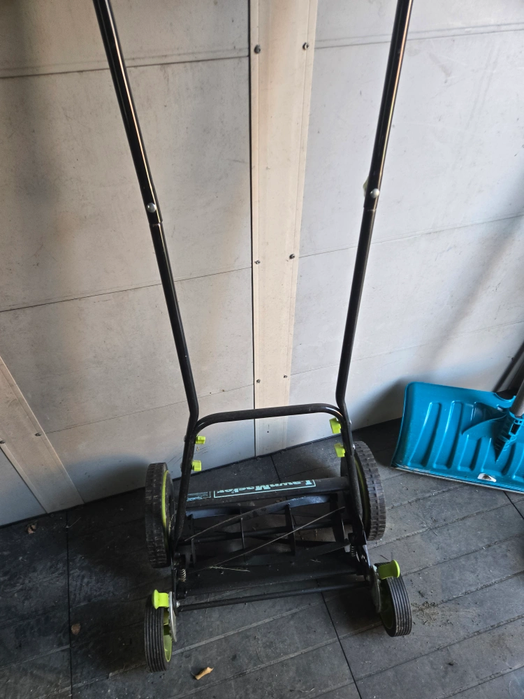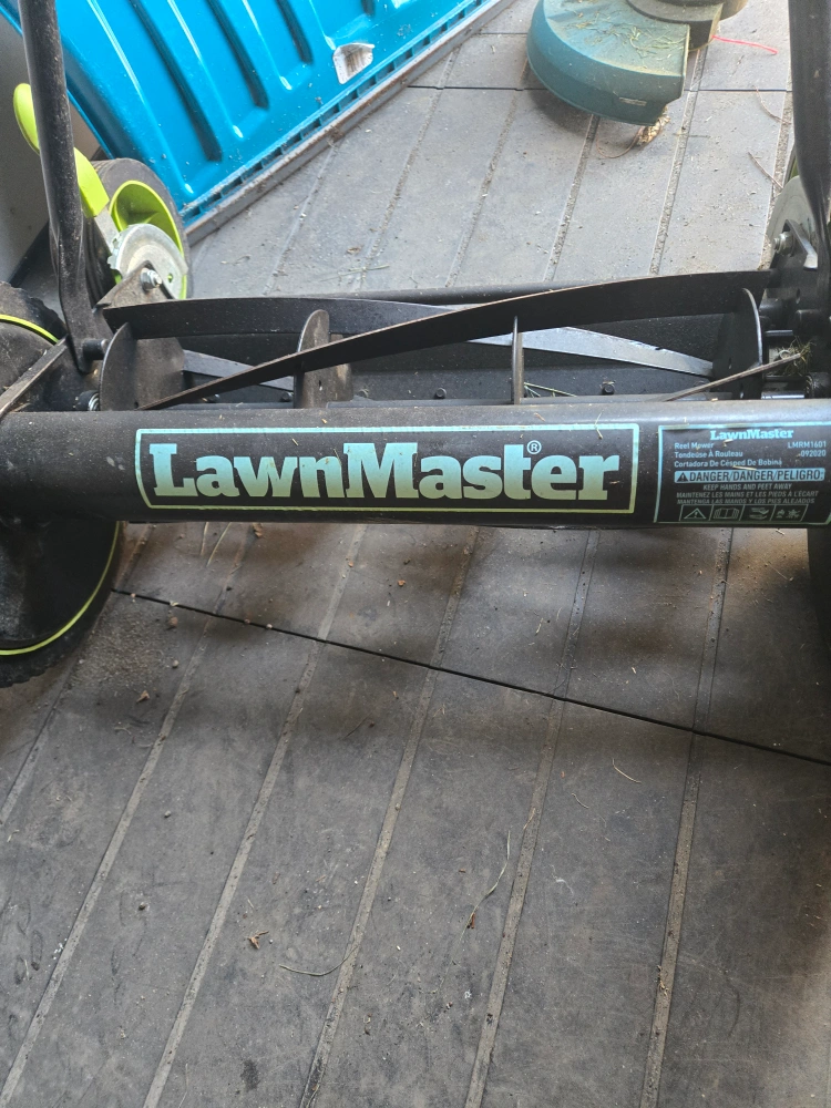 Selling a LawnMaster reel mower. It's in good working condition and ready to keep your lawn looking great! Moved this summer and i bought a battery powered mover